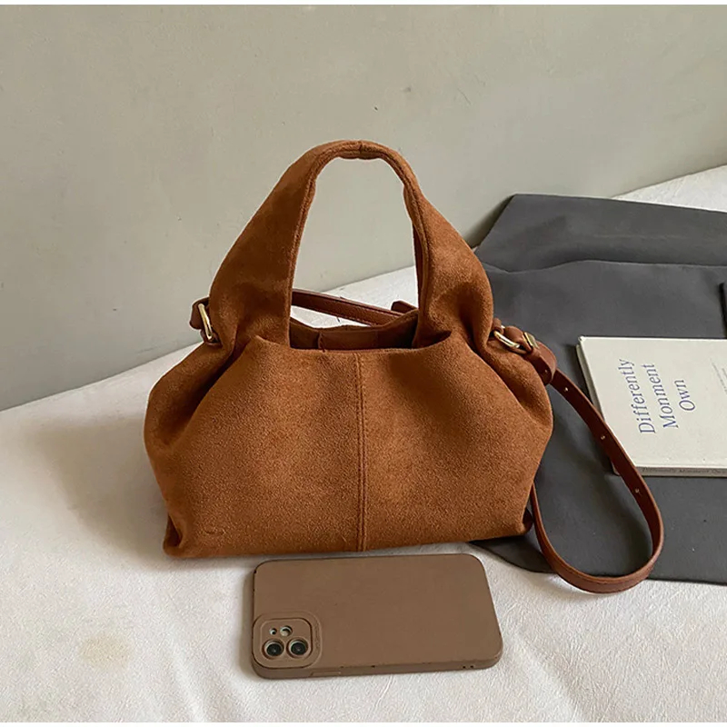 Crafted from premium suede-like fabric, this bag offers exceptional softness and a luxe tactile feel—wrapping your essentials in cozy texture while maintaining a lightweight, easy-to-carry design, perfect for daily outings or relaxed gatherings.