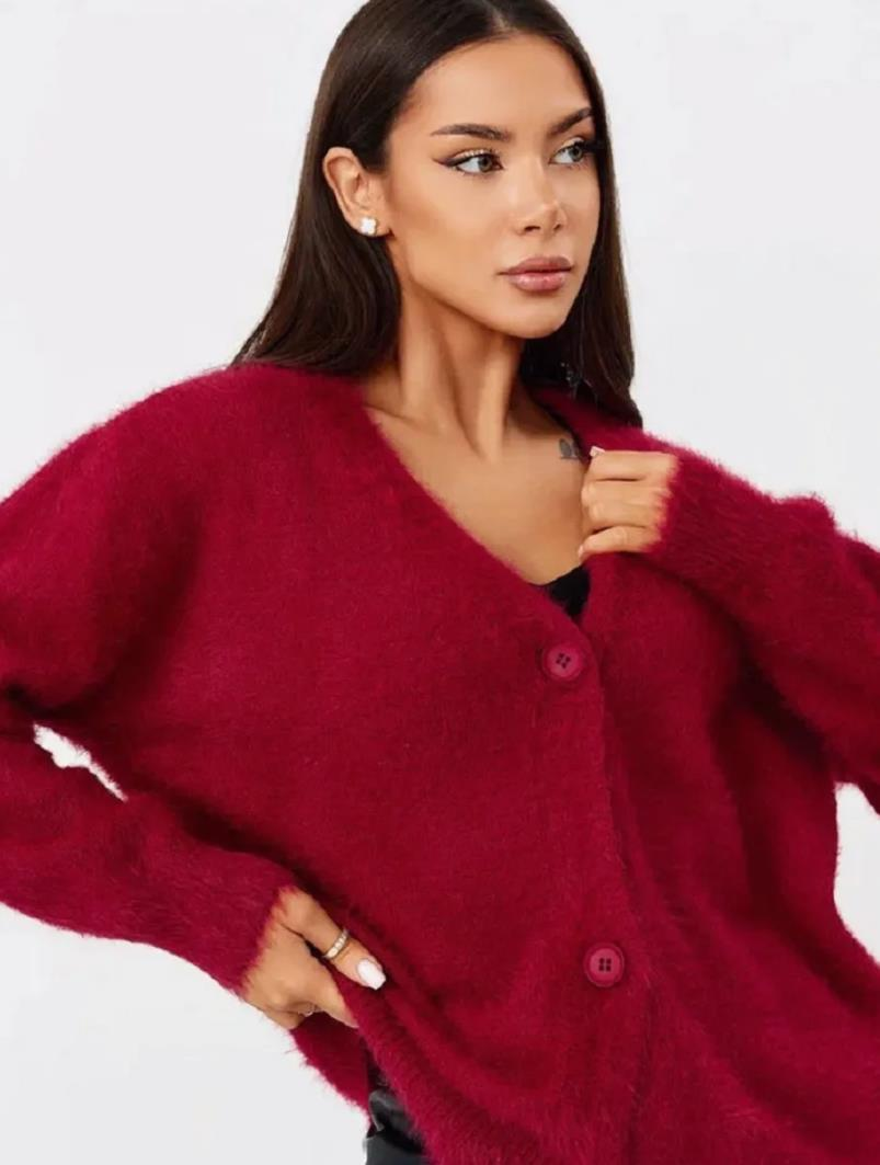 This grey fluffy V-neck cardigan is a cozy and stylish addition to your wardrobe. Made from ultra-soft, fuzzy fabric, it offers exceptional warmth and a luxurious feel against the skin. The V-neck design with button-front detailing adds a touch of classic charm, while the oversized, relaxed fit creates a laid-back yet chic silhouette. The long, voluminous sleeves enhance the cardigan’s cozy aesthetic, making it perfect for layering over tops or wearing on its own during cooler days. Its versatile grey hue easily pairs with various outfits, from casual jeans to tailored trousers or dresses, effortlessly transitioning between different styles and occasions. Whether you’re looking for a comfortable layer for a relaxed weekend or a stylish piece to elevate your everyday look, this fluffy cardigan delivers both comfort and fashion-forward appeal.