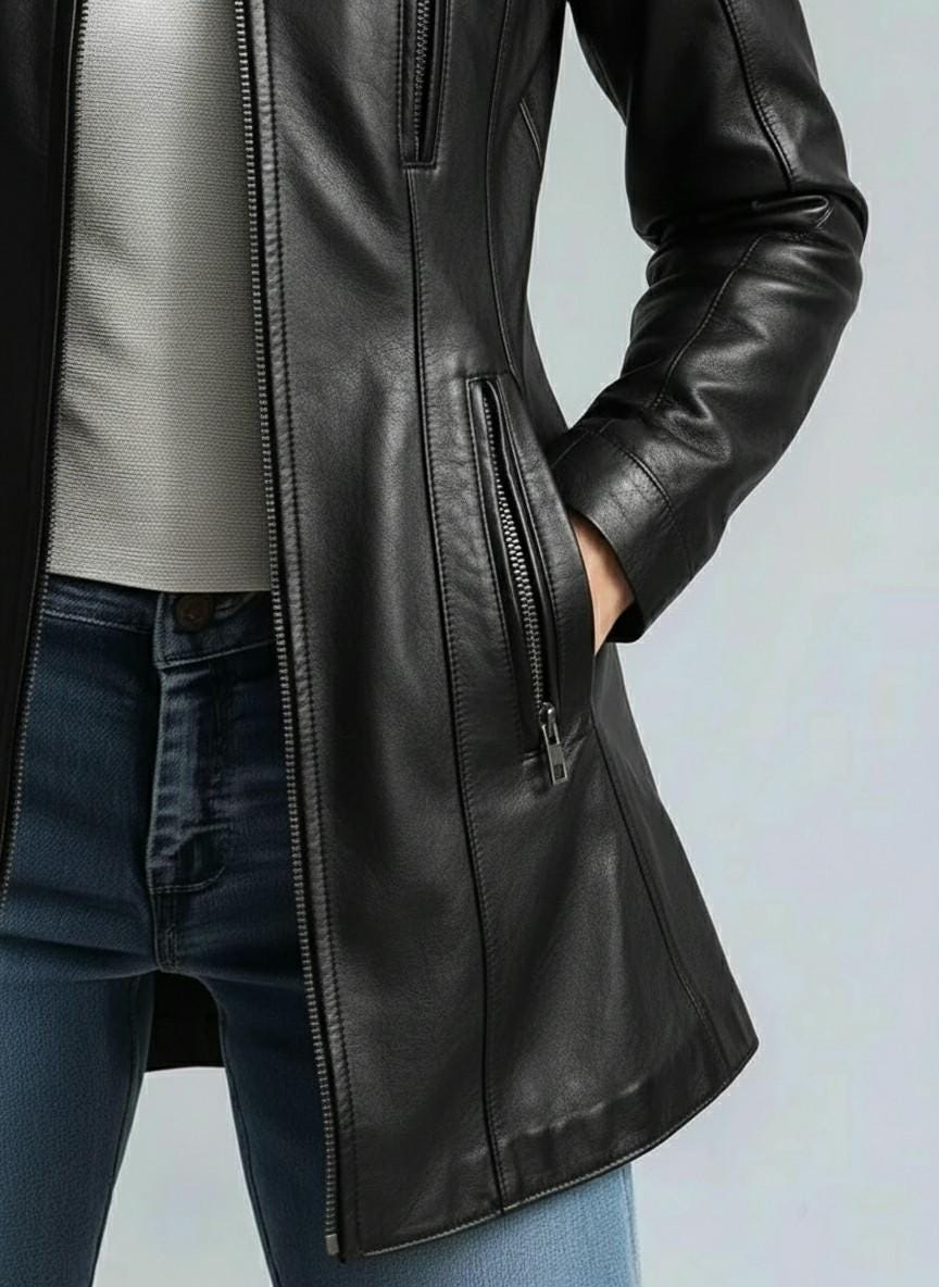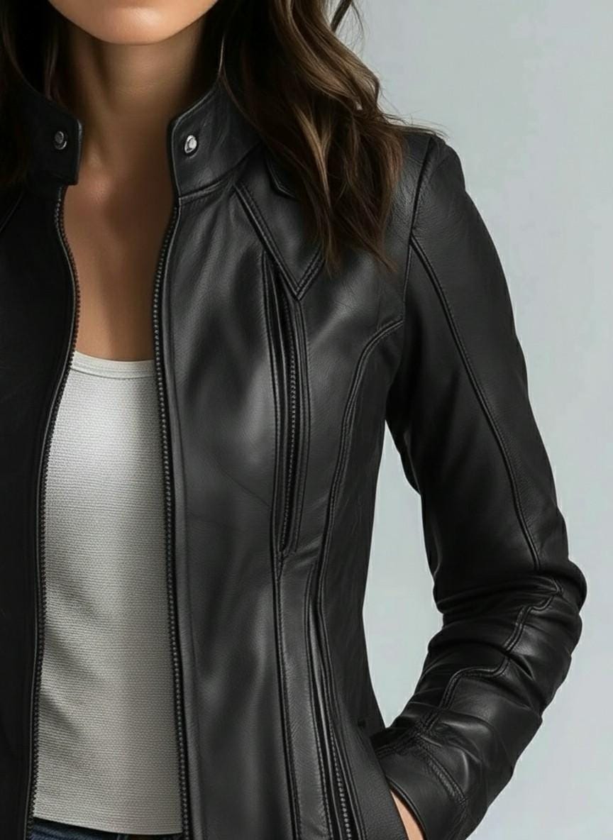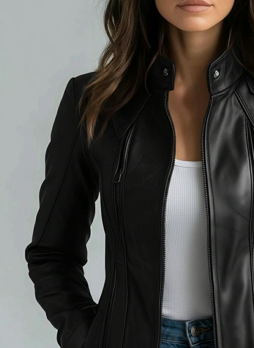 Crafted from premium faux leather, this jacket boasts a smooth, soft surface that balances luxe flexibility with structured durability. It offers lightweight breathability while retaining a polished, refined feel—ideal for transitioning across seasons.