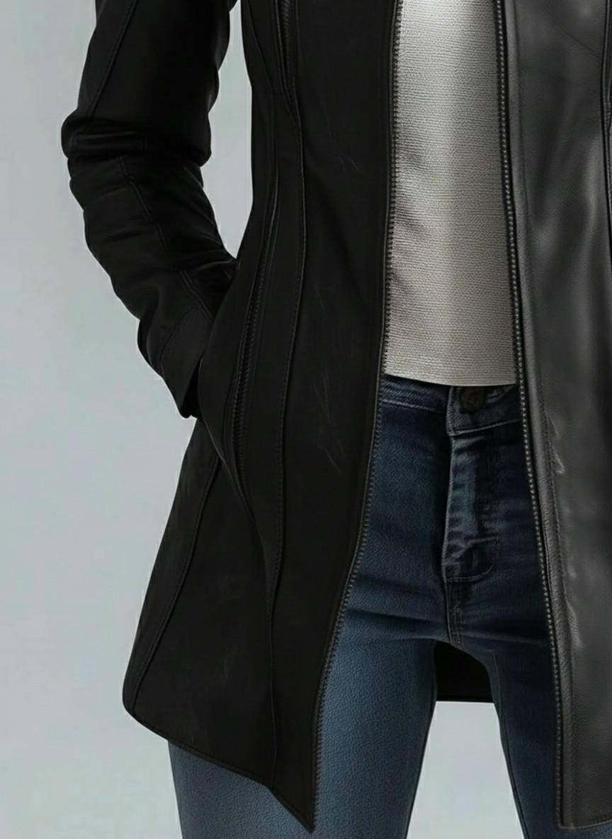 Featuring a sharp, tailored stand collar, this jacket adds a sleek, contemporary touch to any outfit. The streamlined neckline elevates the silhouette while providing subtle protection against cool breezes.