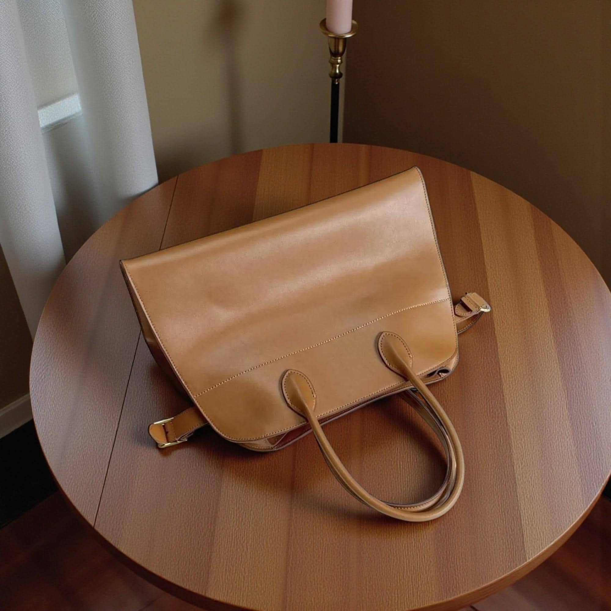 Handmade Large Leather Tote Bag – Minimalist Shoulder Work Bag for Women