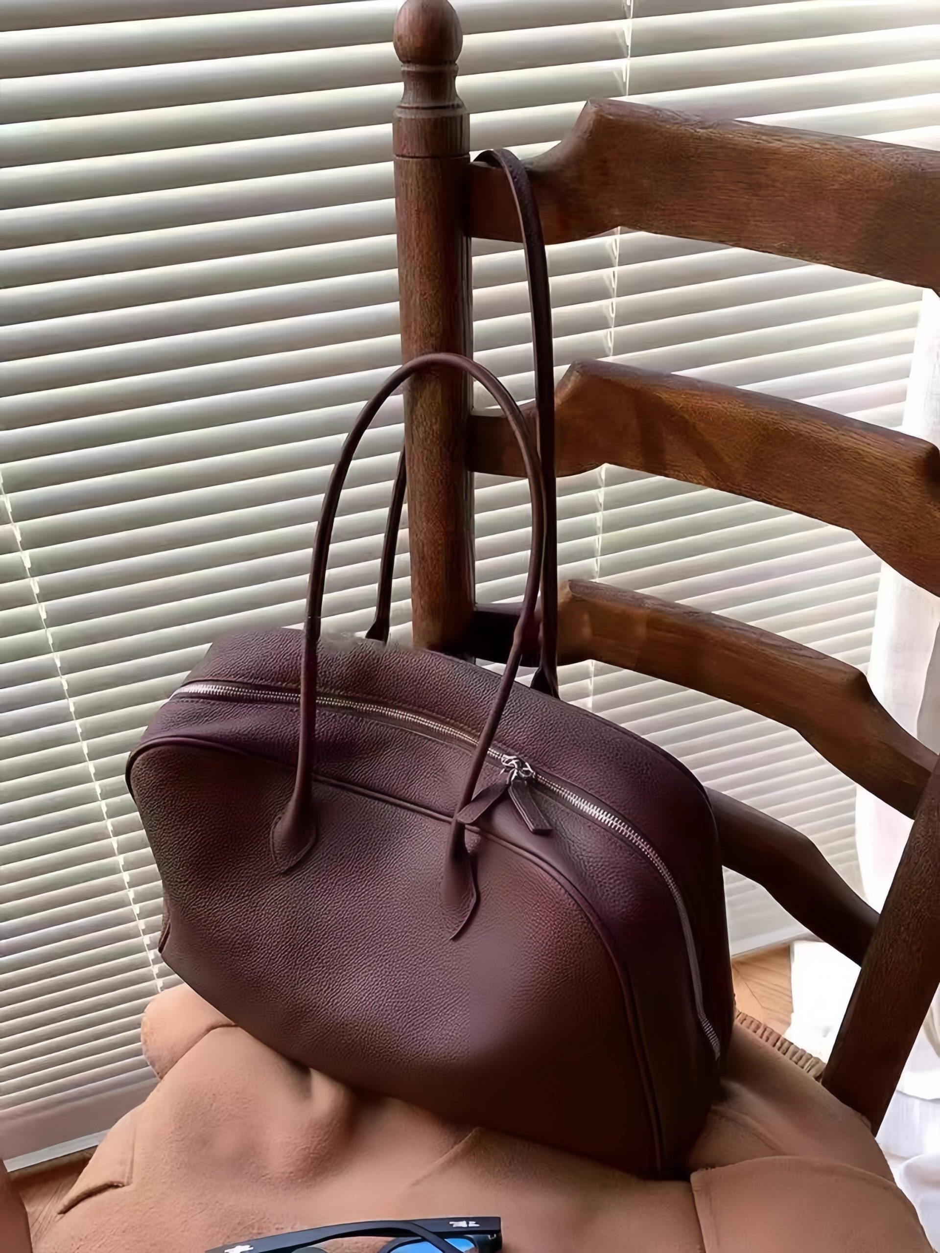 Crafted from premium full-grain leather, this bag boasts a soft, tactile pebbled texture that ages gracefully over time. Its sturdy construction ensures long-lasting resilience for daily use, while the supple material offers a comfortable, luxurious feel that elevates any ensemble.