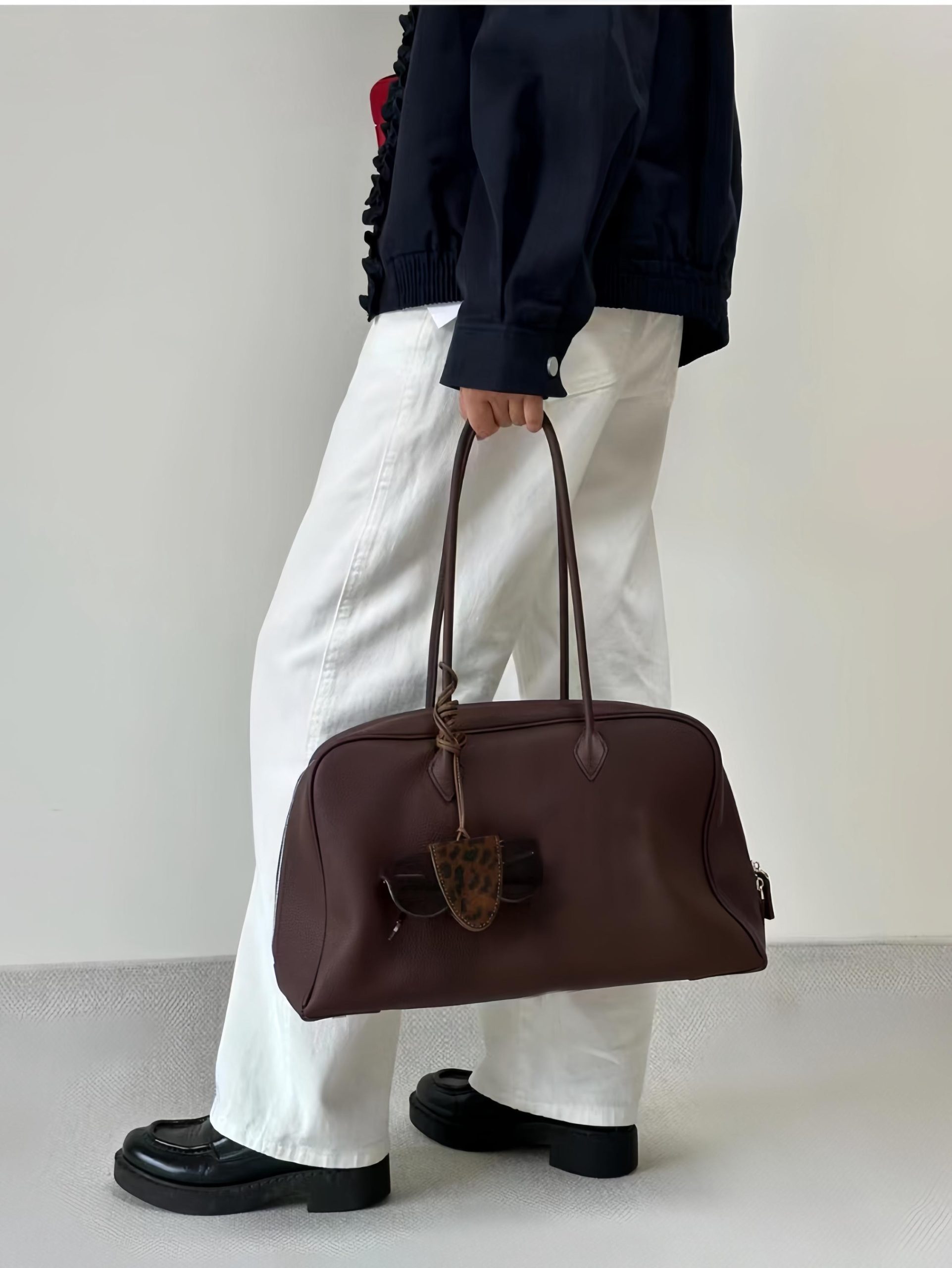 Handmade Leather Bag,Shoulder Bag,Crossbody Bag, Women Tote Bag, Gift For Her,Vintage Bowling Bag,15.75''×5.12''×10.24''