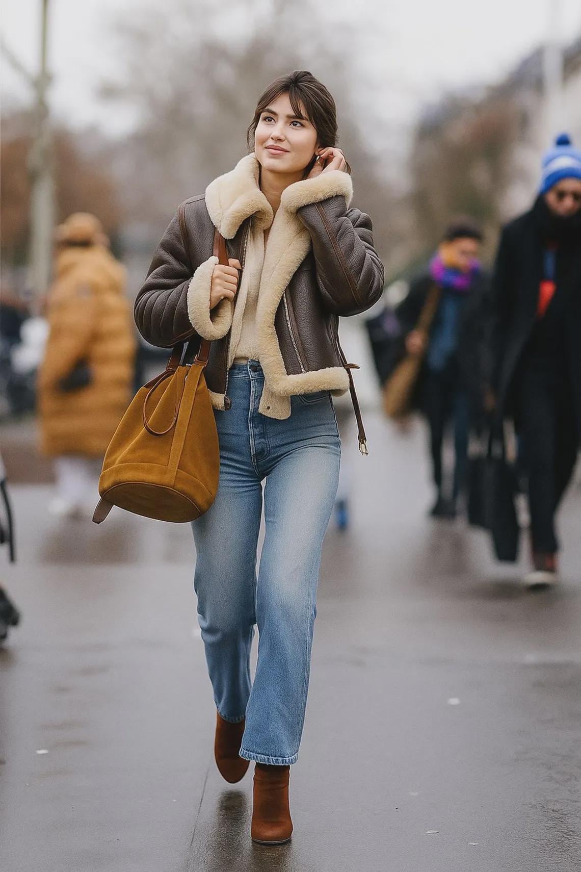Chic Oversized Collar & Cropped Silhouette: Featuring a statement oversized shearling collar and a tailored cropped fit, this jacket creates a bold, eye-catching silhouette. The collar frames the neckline gracefully, while the cropped length accentuates the waist for a flattering look.
