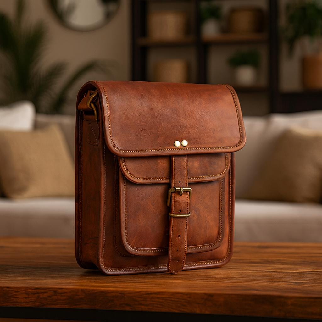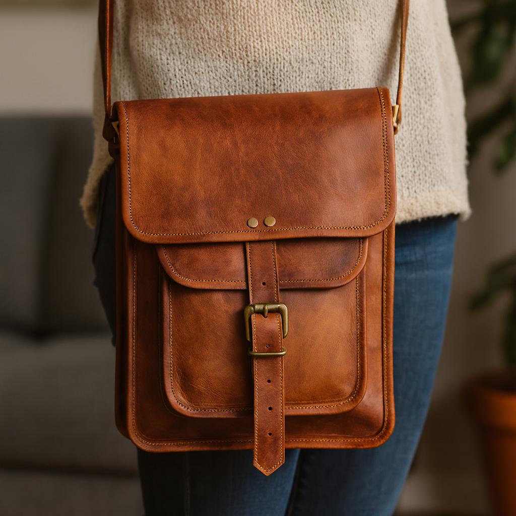 Handmade Vintage Leather Crossbody Bag – Full Grain Brown Shoulder Bag for Women & Men | Everyday Messenger Bag | Rustic Sling Bag