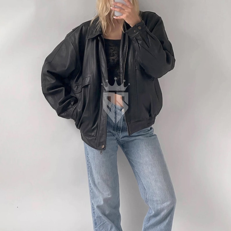 Description: This women’s oversized jacket is a versatile staple for modern wardrobes, blending edgy style with everyday comfort. Made from premium faux leather, it offers a sleek, structured fit that holds its shape while feeling soft to wear. The oversized silhouette, functional patch pockets, and classic design make it suitable for casual daily wear or trendy layered looks. Pair it with your favorite bottoms and accessories to craft a chic, personalized outfit — stay stylish and comfortable no matter the occasion.