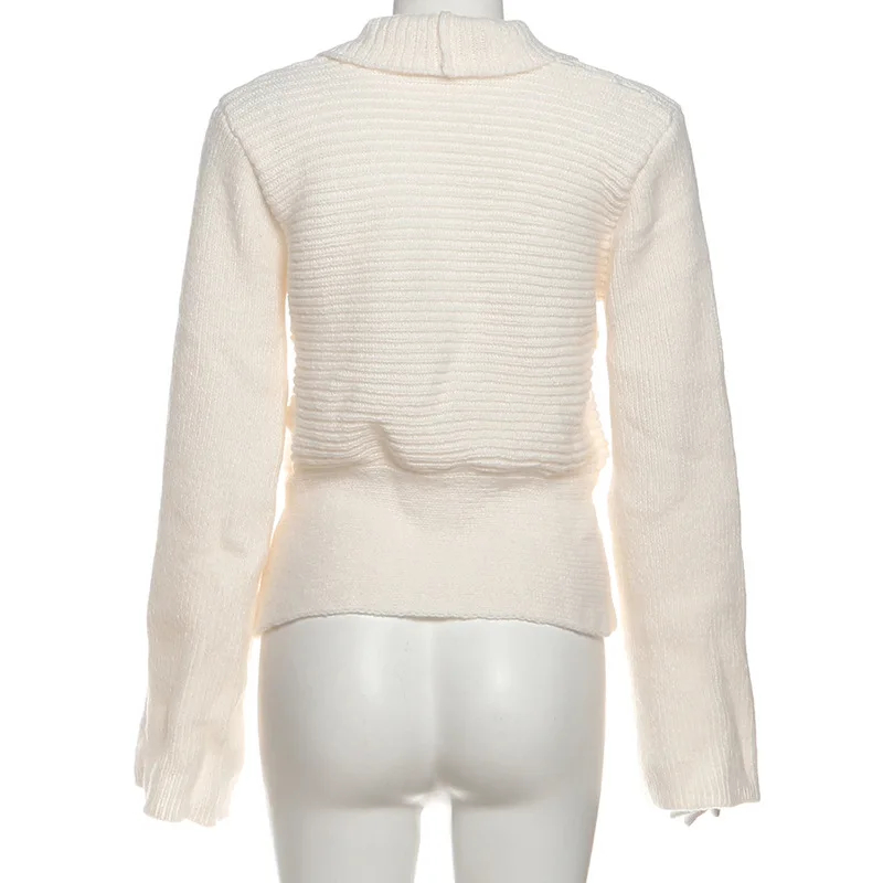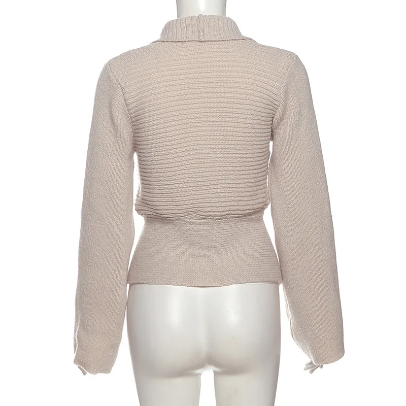 High Quality Hot Selling Wholesale New Autumn Design Sense Casual Retro Deep V Sexy Hollow Loose Sweater Cardigan Jacket Women