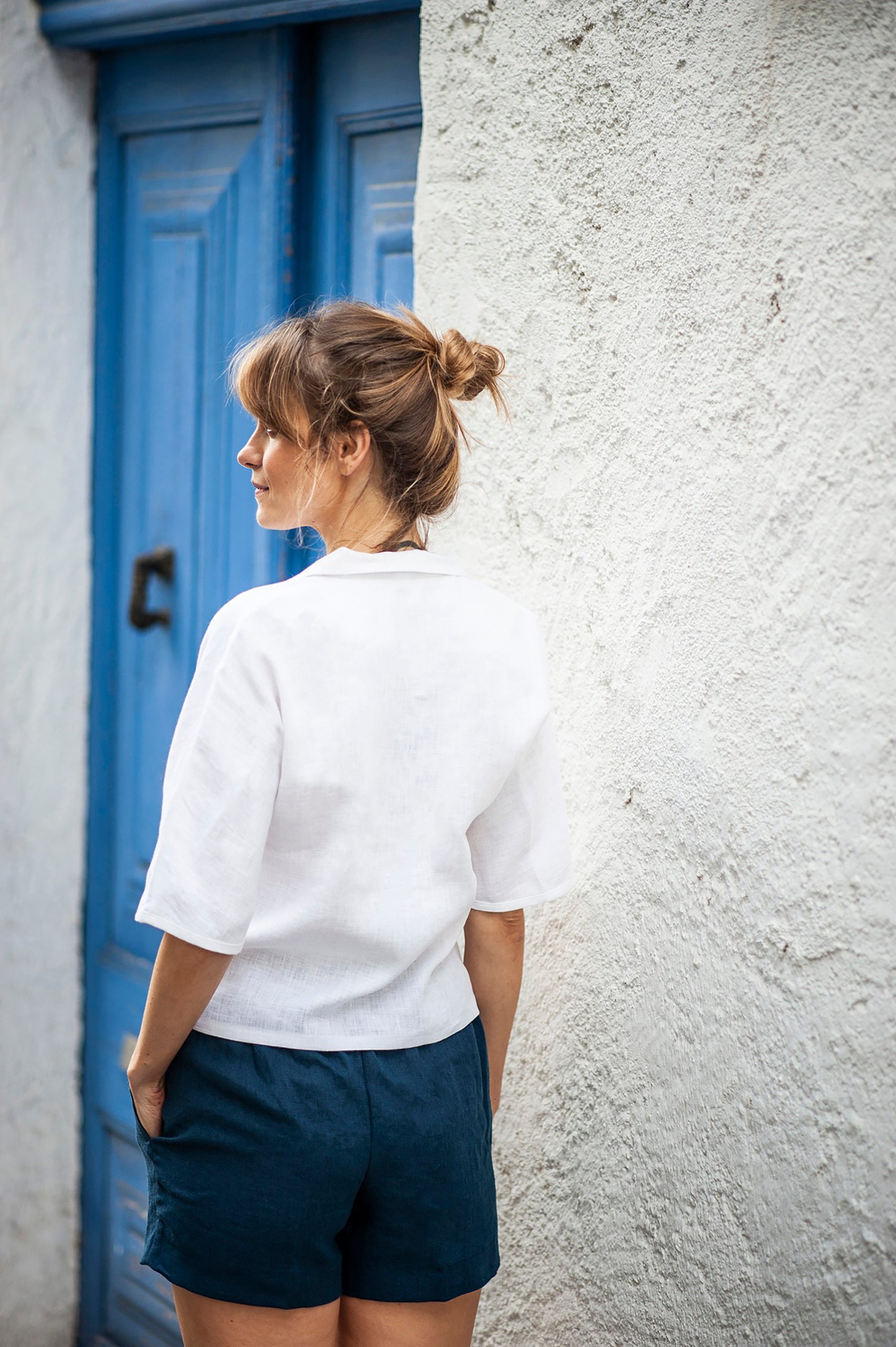 High Waisted Linen Shorts Softened Lithuanian Linen, Beach to Evening