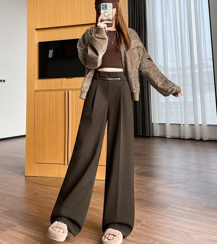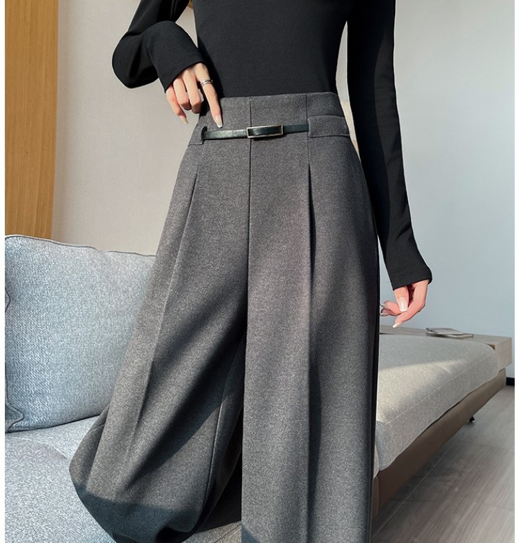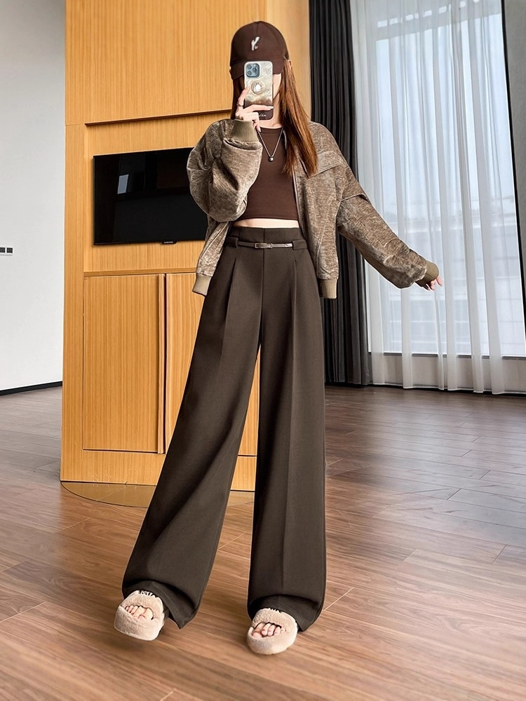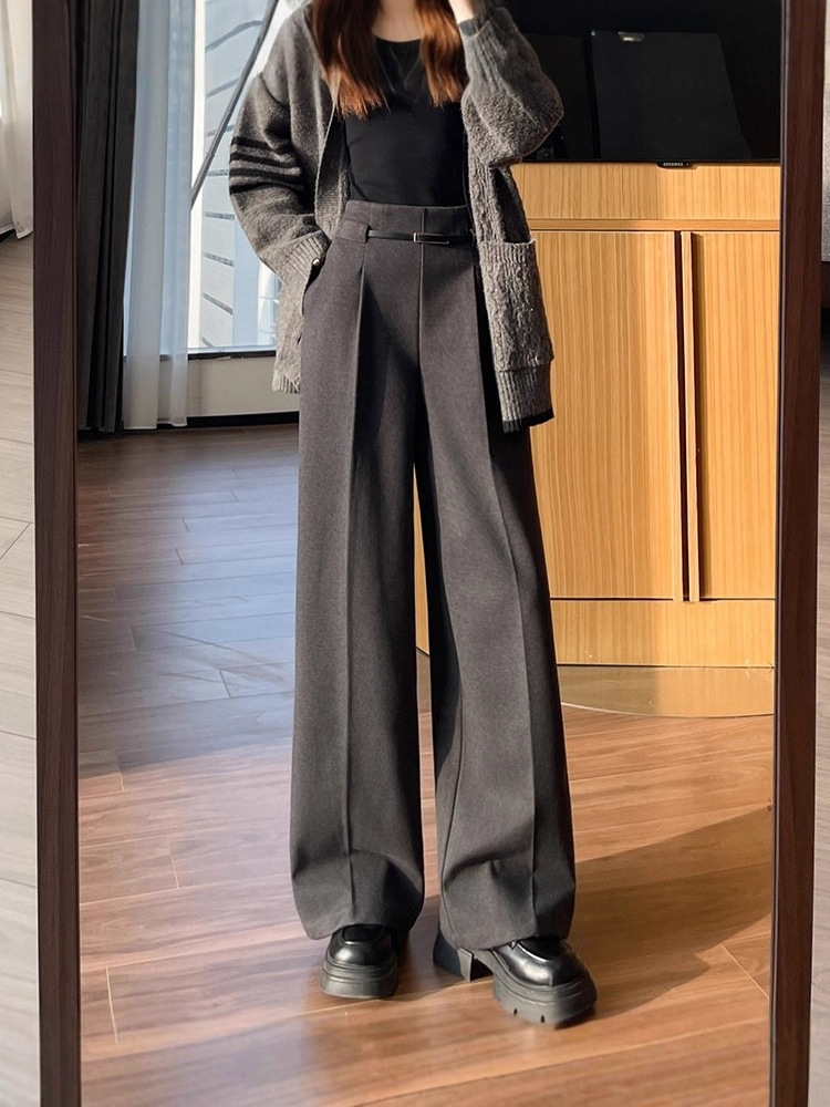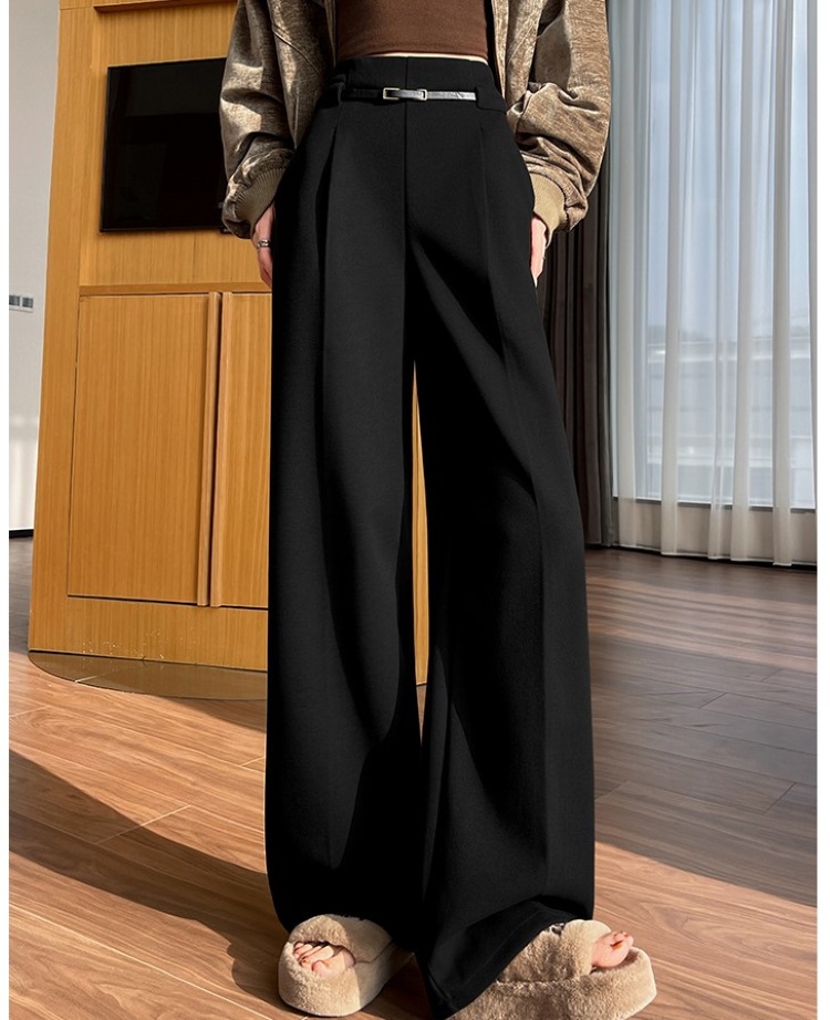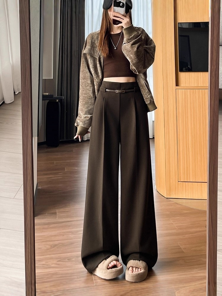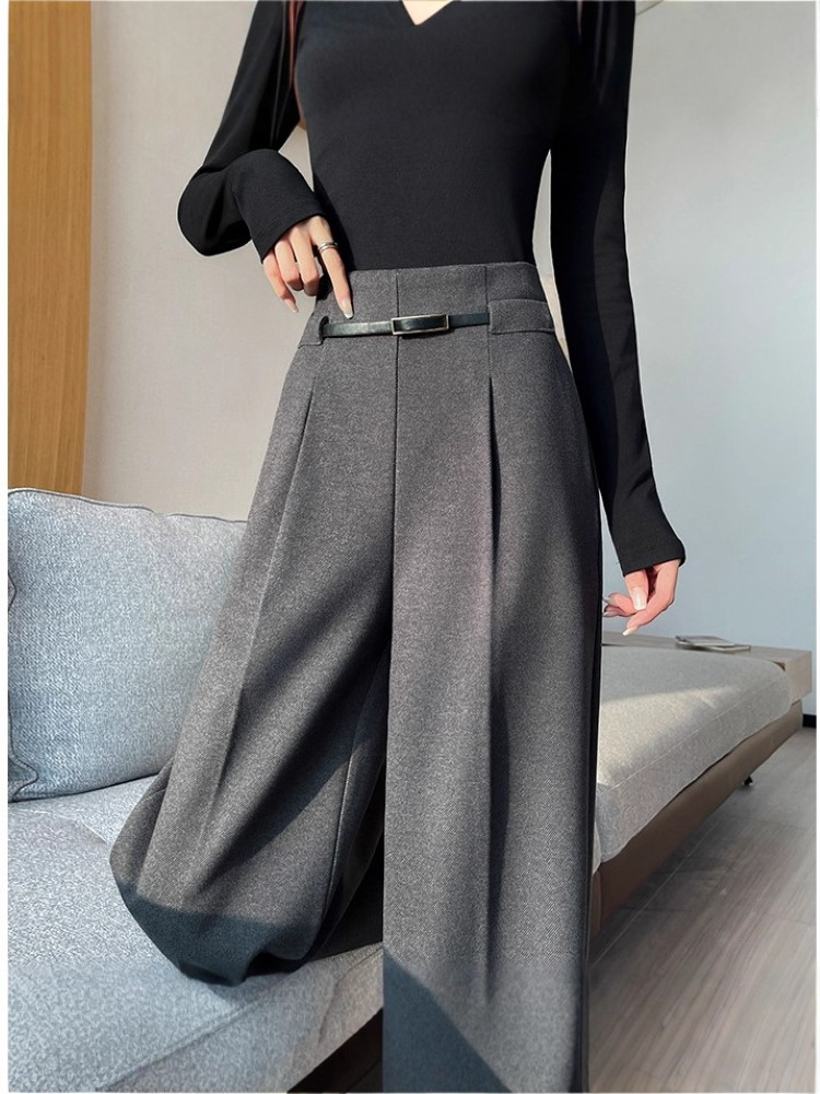 Description: These high-waisted wide-leg tailored pants are a versatile staple for your wardrobe. Made from a smooth, structured woven blend, they feature a matching waist belt, subtle front pleats, and a floor-grazing wide-leg fit. The high-waisted design elongates your silhouette while ensuring all-day comfort. Pair them with your favorite tops to create looks that suit casual outings, semi-formal events, or everyday life. Stay stylish and confident with these on-trend pants.