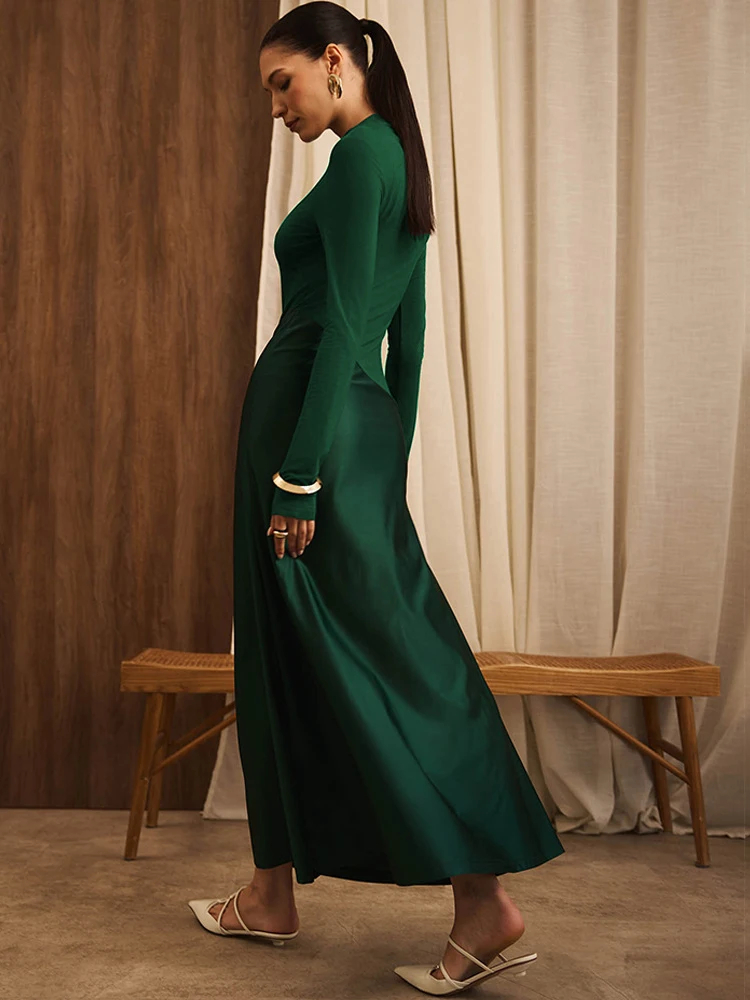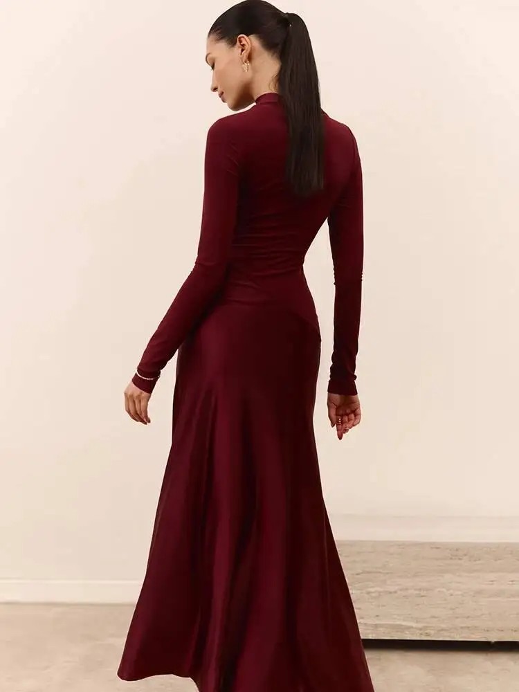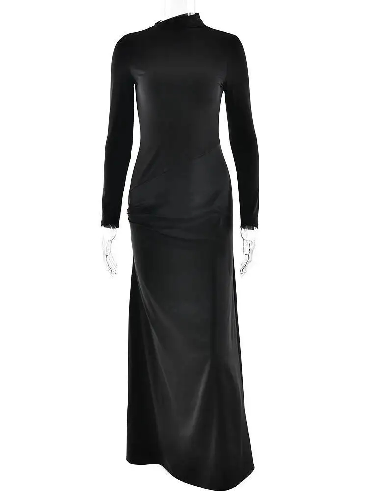 Flattering Maxi Fit: The long-sleeved, body-contouring cut with a flowing maxi length creates a glamorous shape, effortlessly showcasing your figure for a confident and sophisticated appearance.