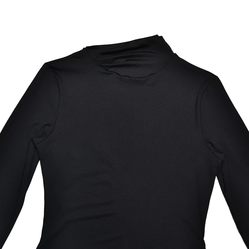 Chic High Neck & Ruched Detail: Featuring a stylish high neck and artistic ruched design on the skirt, this dress adds a refined touch to your look while enhancing your silhouette with delicate folds.