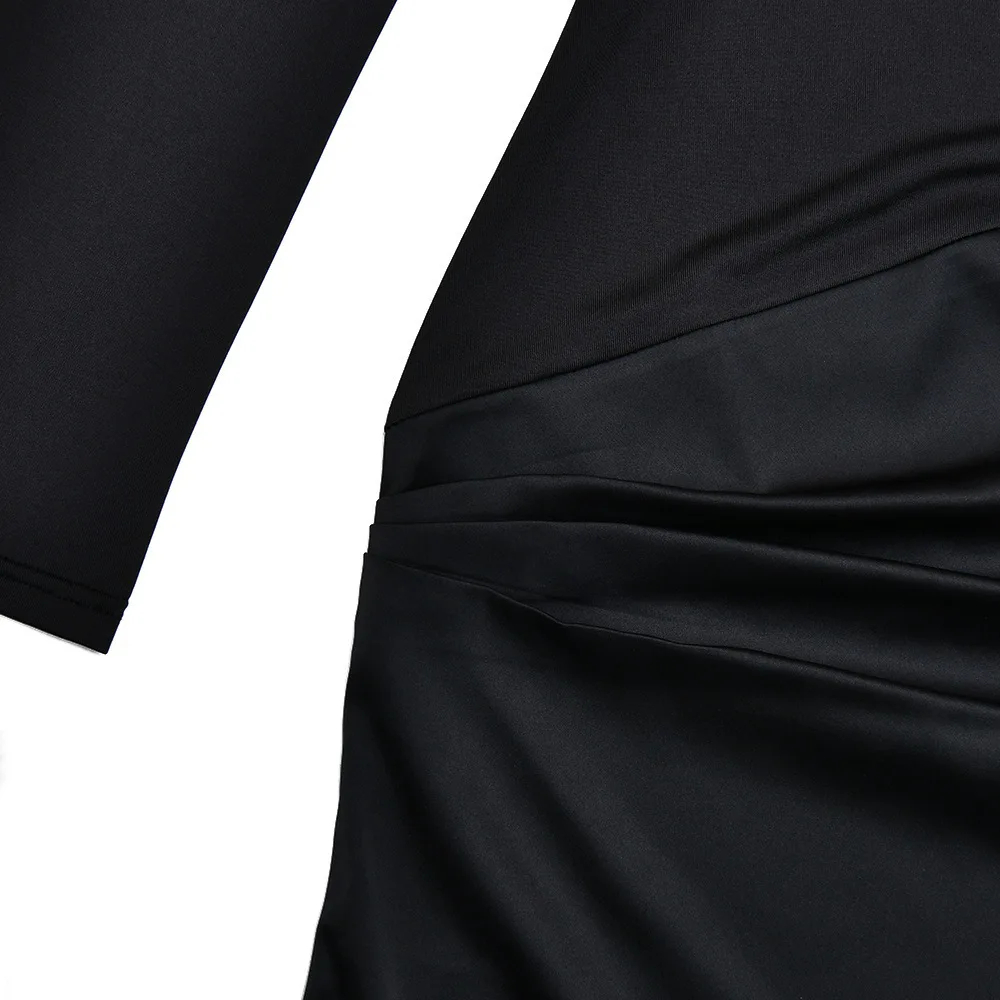 成为第一个“Patchwork Satin Long Sleeve Women Maxi Dress Black Round Neck High Waist Dress Winter New Elegant Party Evening Dress” 的评价者