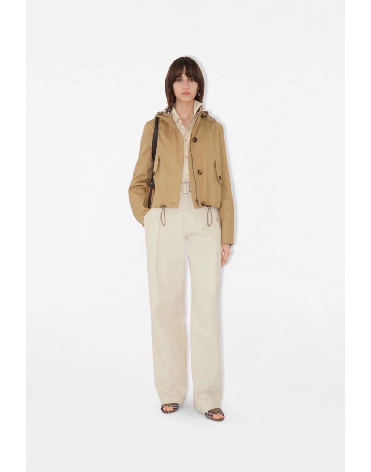 Khaki Cropped Hooded Jacket with Drawstring Details