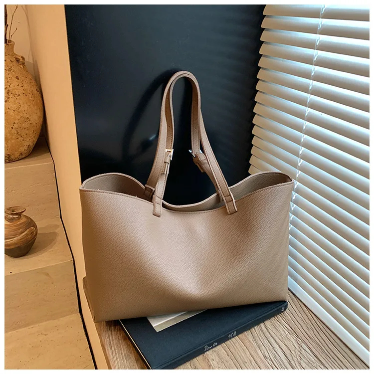 Korean Version Large Capacity Handheld Design Women's Tote Bag Water Resistant Leather Handbag for Commuting
