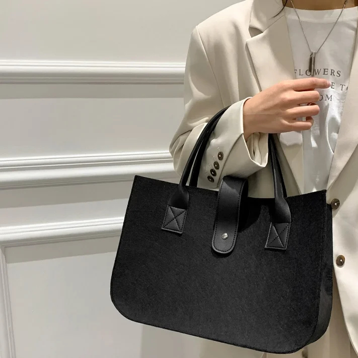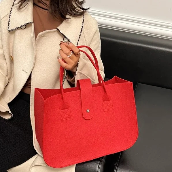 Large Capacity Trendy Tote Bag Custom Logo Felt Handbag for Gift Packaging Thickened Solid Multicolored Bag