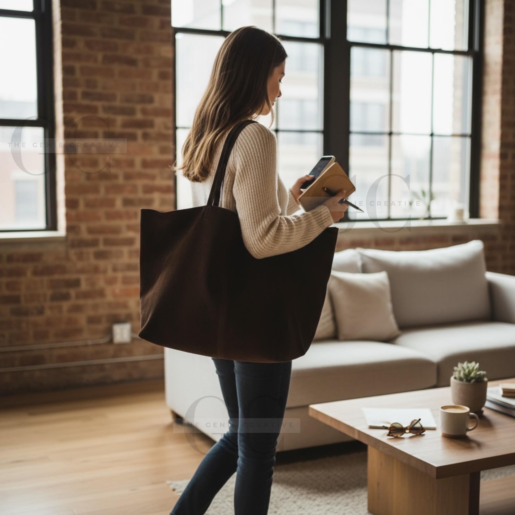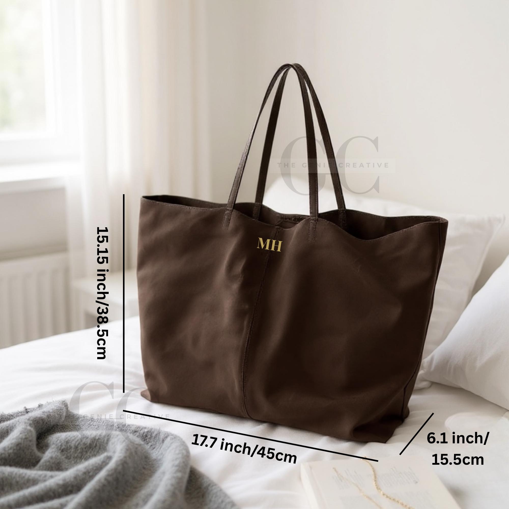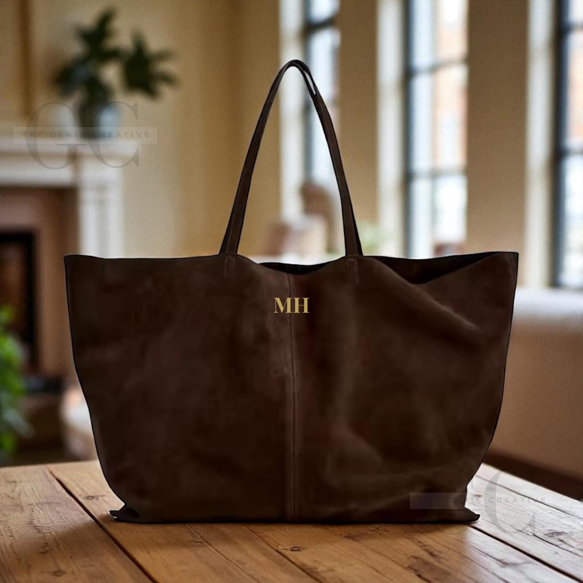 Large Suede Tote Bag Brown Suede Shoulder Bag Women Daily Work Bag Gift For Her Personalized Initial Bag Oversized Laptop Bag
