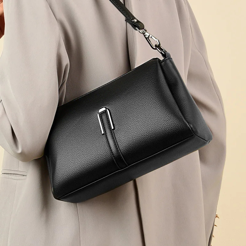 The front minimalist metal clasp adds a modern, refined flair to the design—blending subtle trendiness with timeless elegance. This functional accent not only elevates the bag’s visual appeal but also ensures secure storage for your daily essentials.