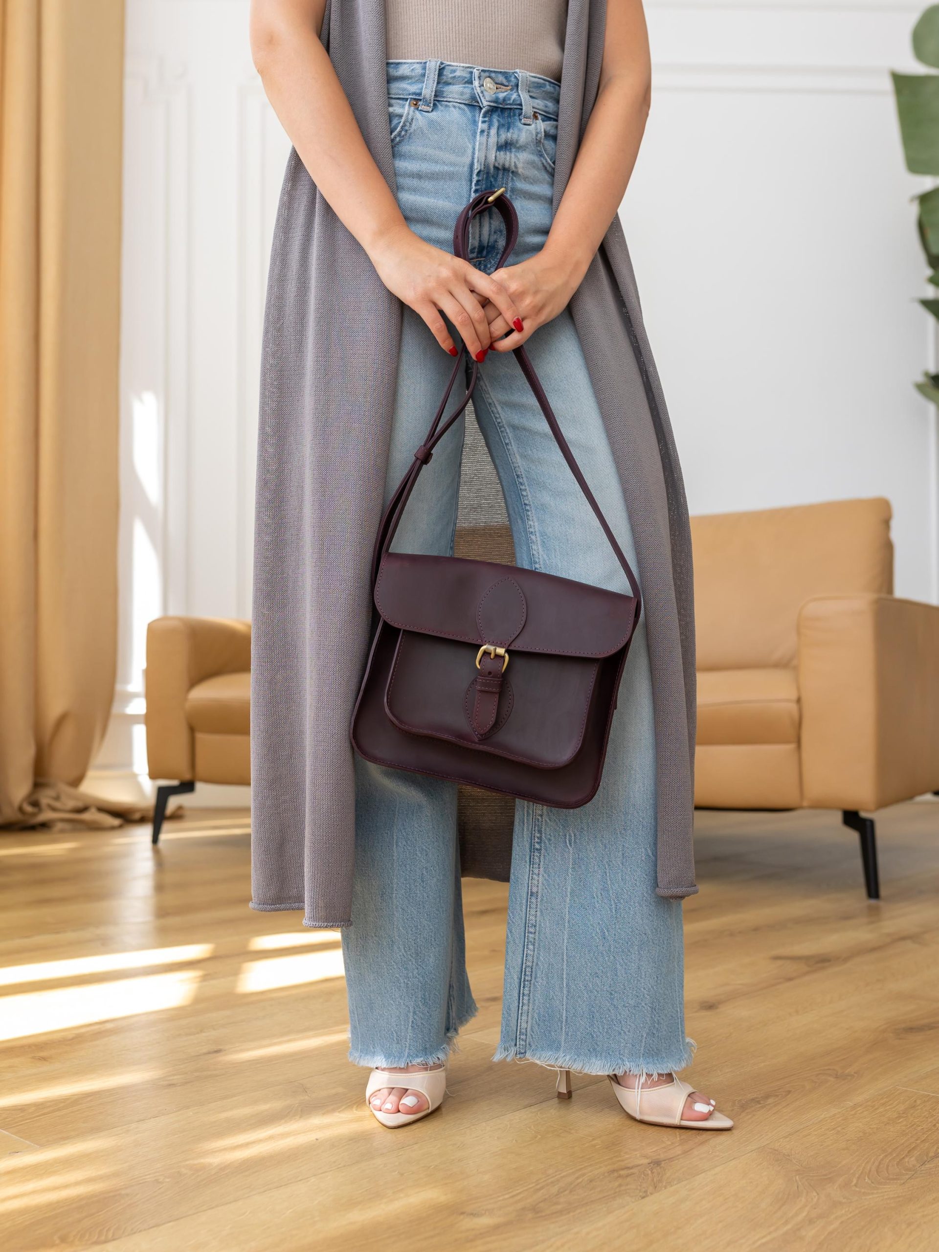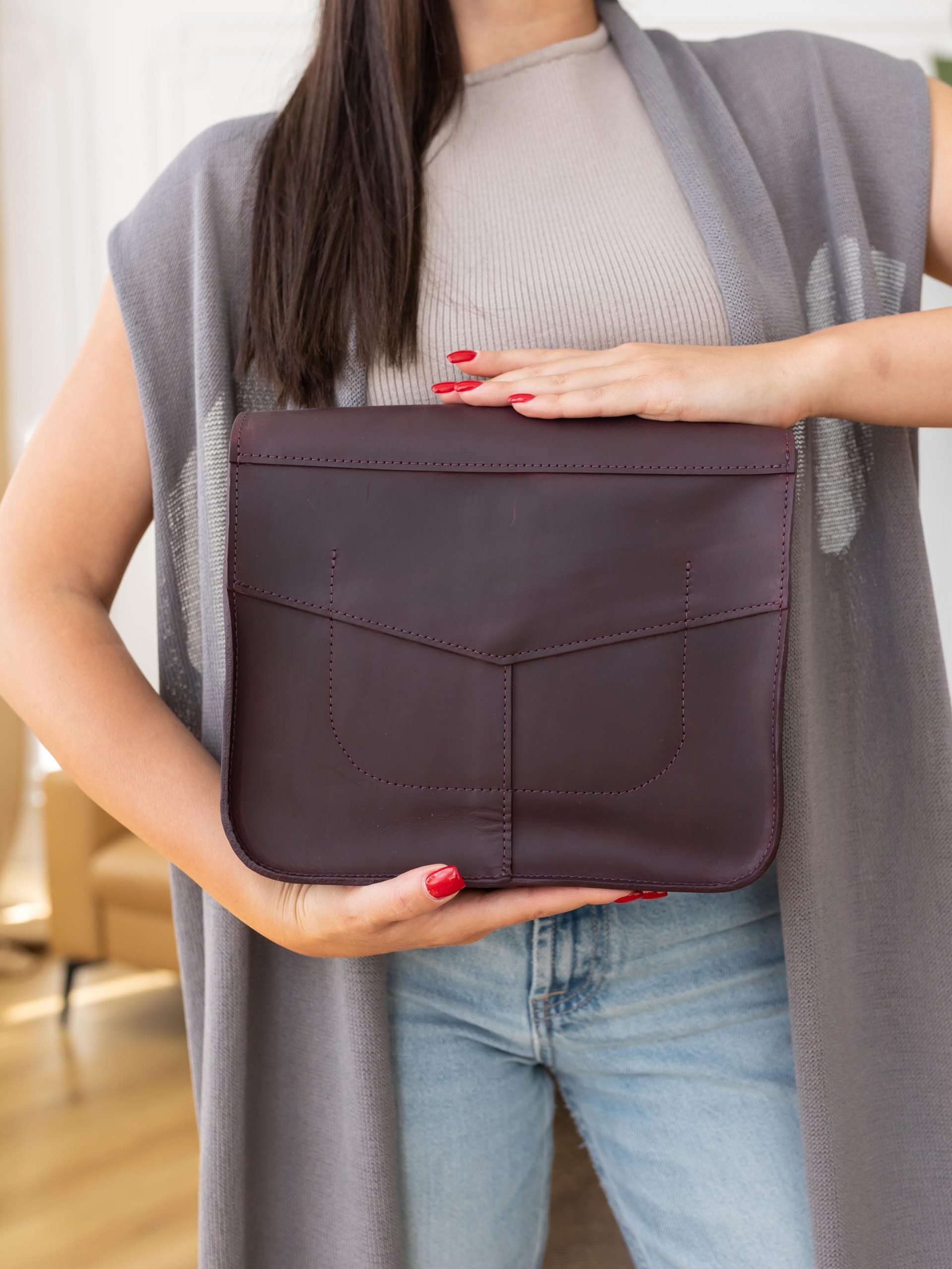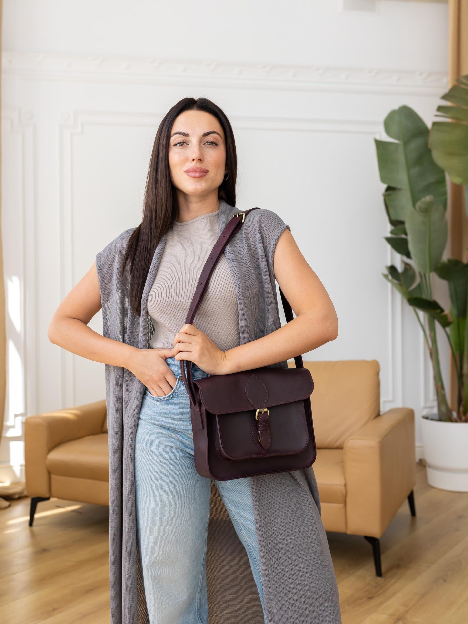 This bag pairs effortlessly with a knit top and jeans for a cozy casual look, a midi dress for brunch dates, or a blazer and trousers for a polished office vibe. Its deep, rich hue elevates any ensemble, transitioning smoothly between daily life, work, and relaxed outings.