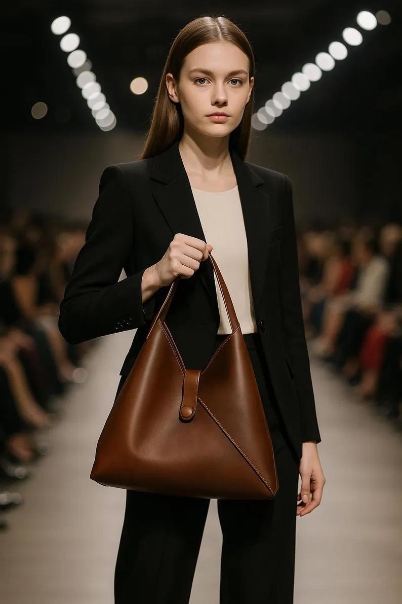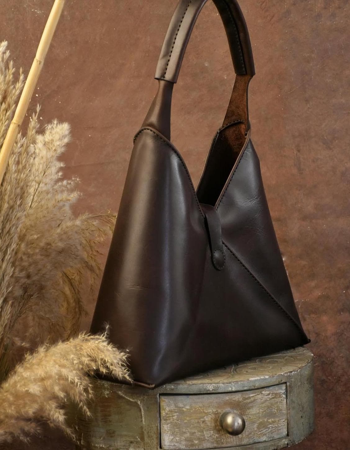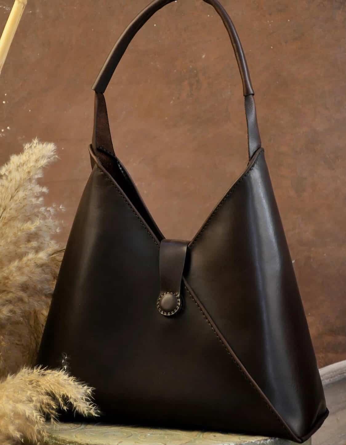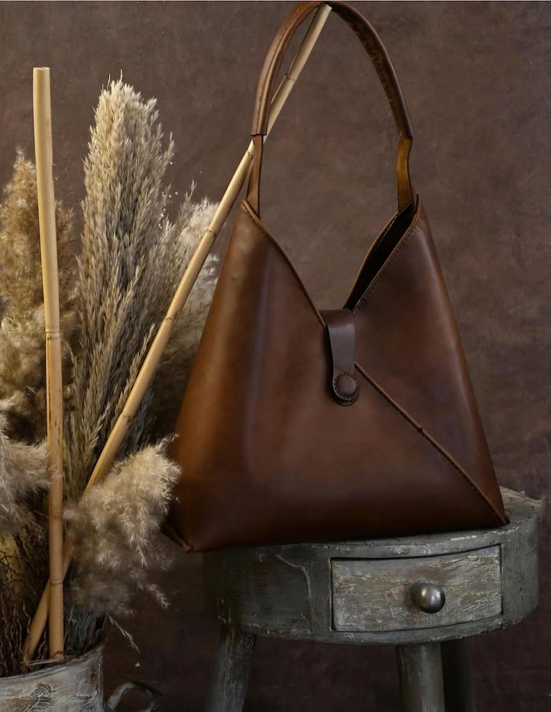 This leather top-handle bag is a sophisticated, versatile addition to any accessory collection. Made from premium full-grain leather, it offers durability and a rich, natural finish that ages gracefully. The structured triangular shape and minimalist handle add modern style, while the discreet closure ensures security for daily essentials. Its compact yet roomy design suits daily wear, casual outings, or semi-dressy occasions—pair it with your favorite ensembles to add a touch of artisanal charm to your look. Stay stylish and organized with this timeless, functional bag.