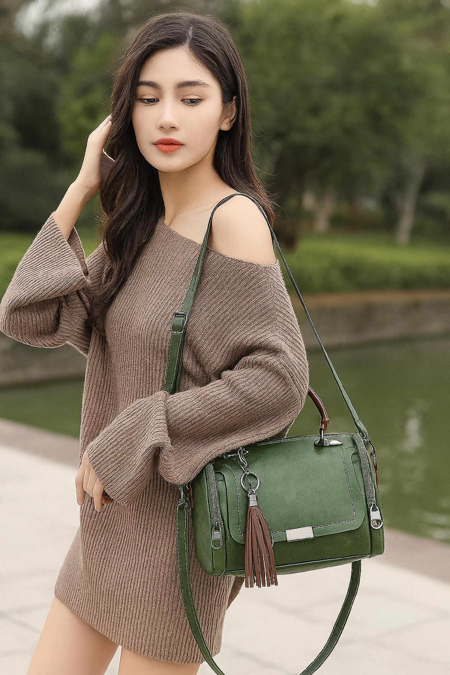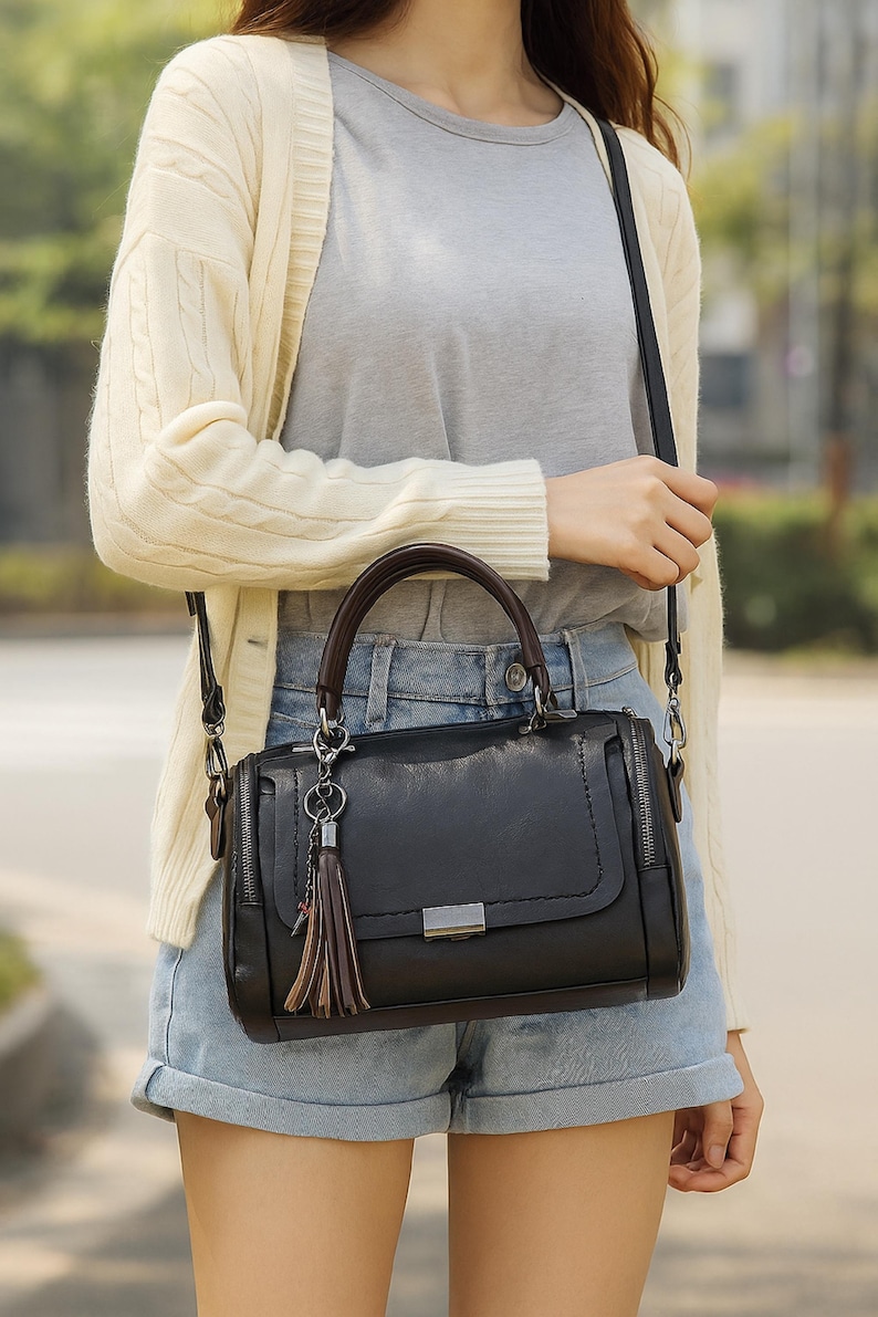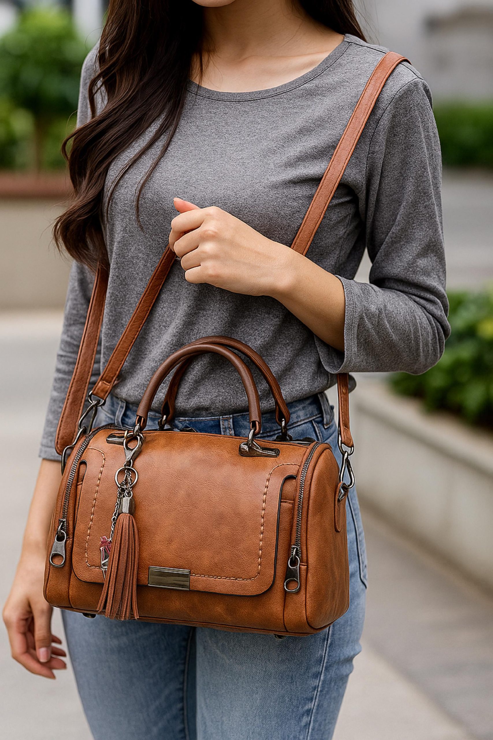 Leather Satchel Handbag: Tassel Charm Crossbody Purse
