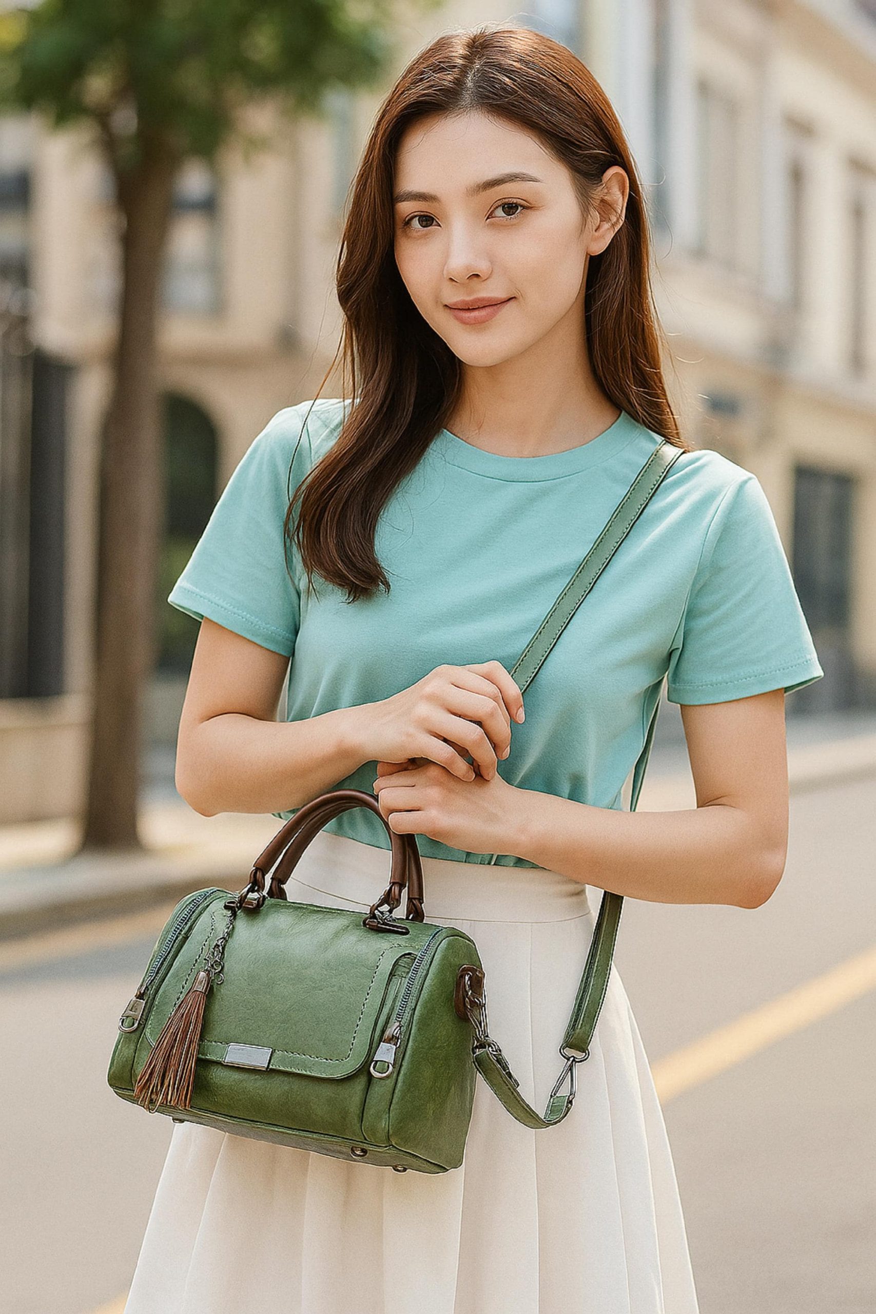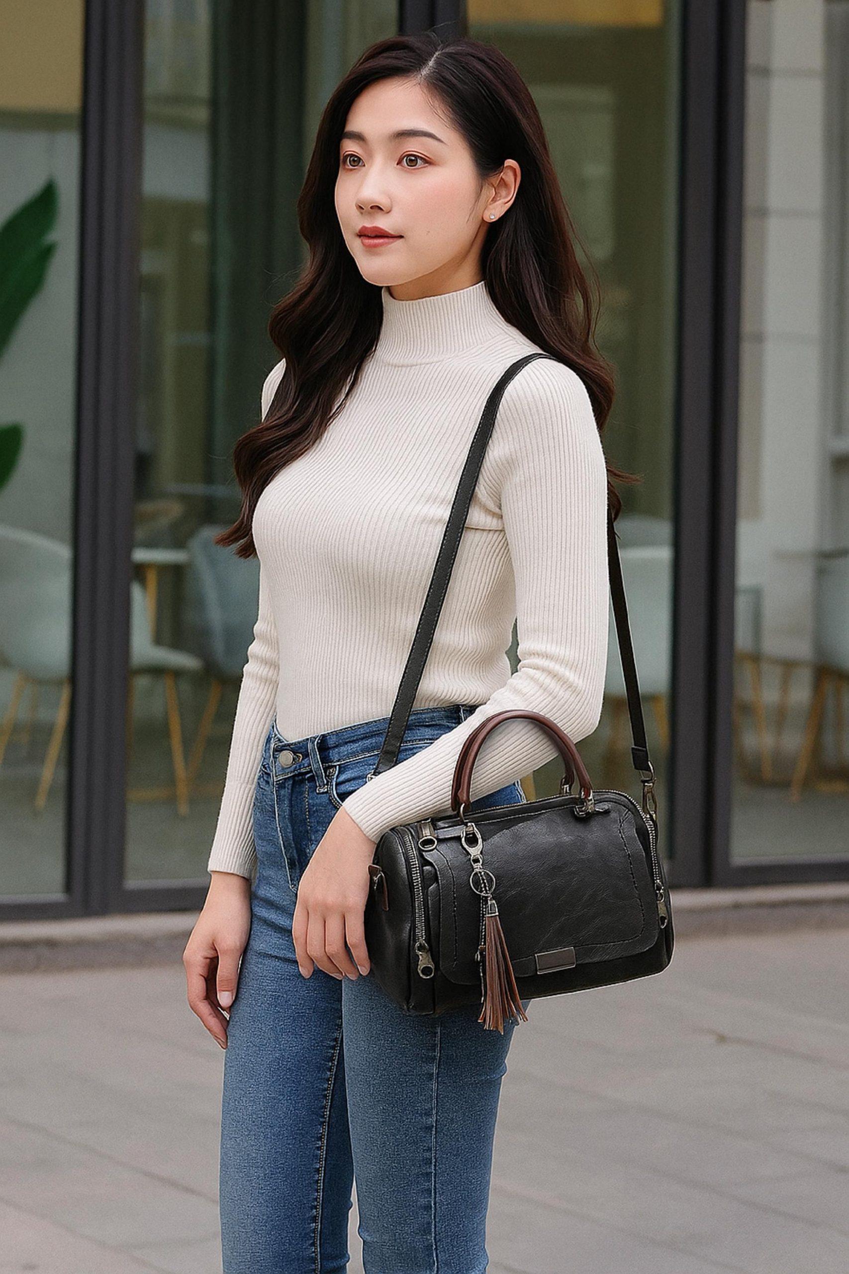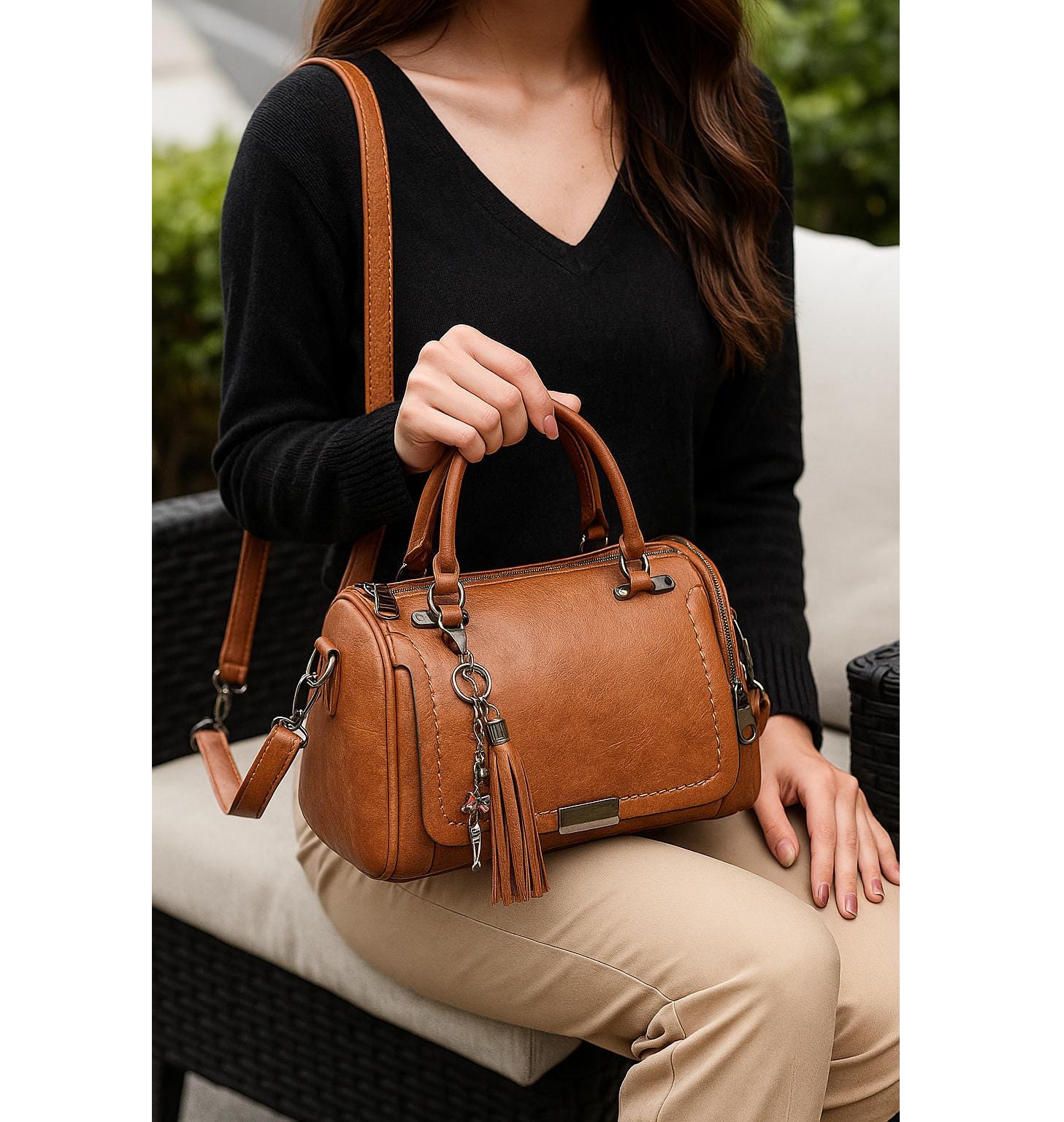 Leather Satchel Handbag: Tassel Charm Crossbody Purse