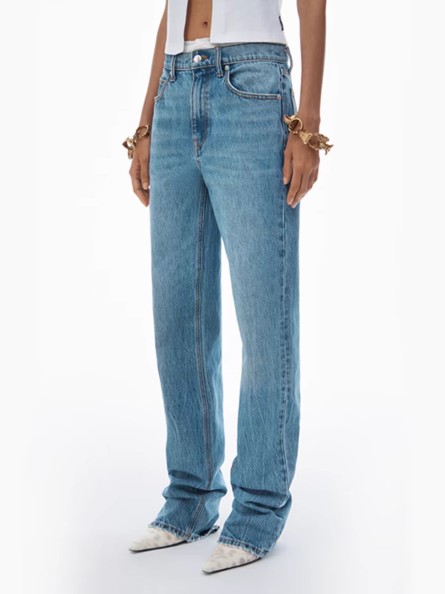 The styling potential of these jeans is boundless. Match them with a cropped top and pointed-toe heels for a sleek, elongated silhouette, or pair them with an oversized sweater and sneakers for a cozy, casual look. Whether you’re aiming for a nostalgic 90s vibe or a modern minimalist ensemble, their timeless design and flattering fit ensure they become a staple in your wardrobe, proving that well-crafted straight-leg denim is key to endless fashionable outfits.