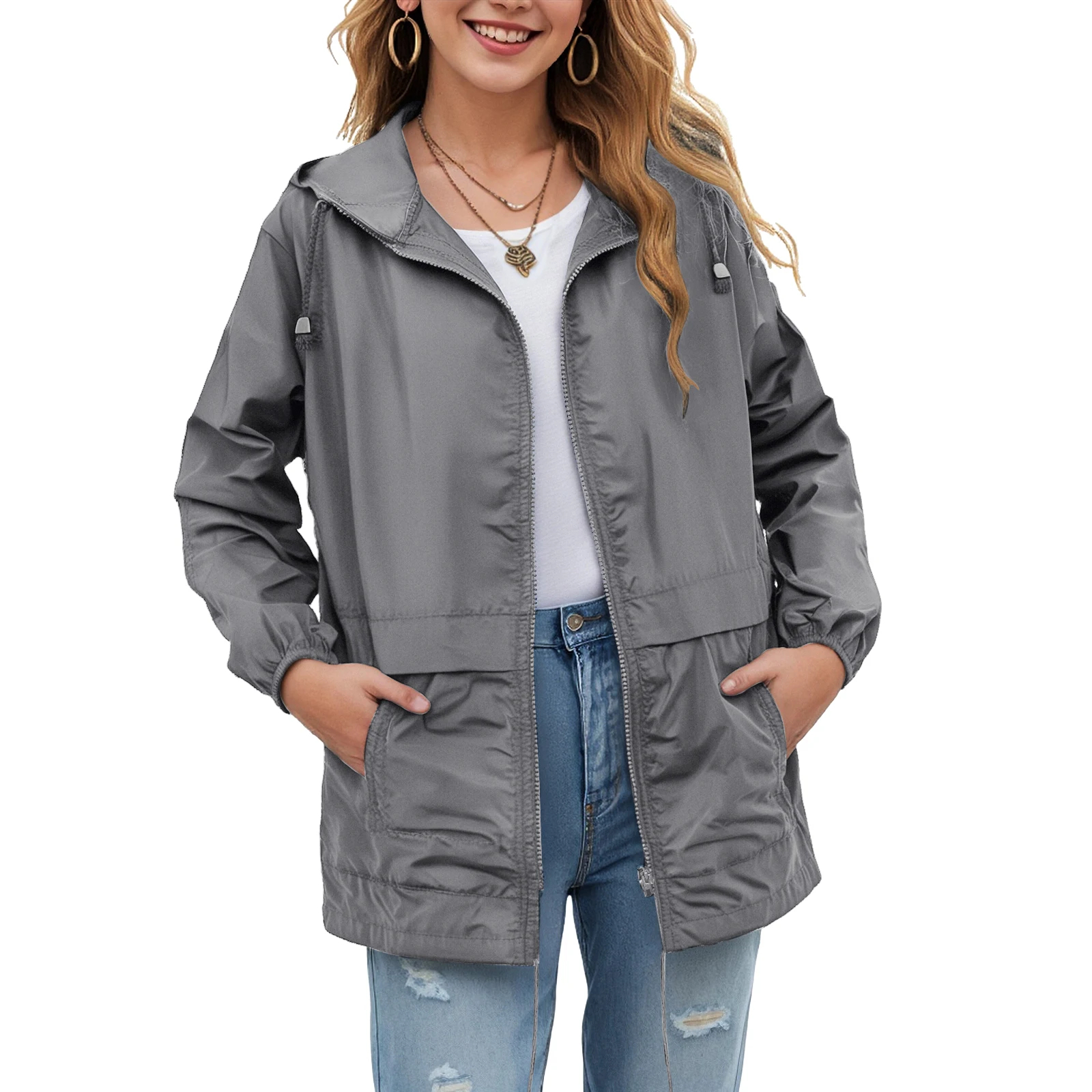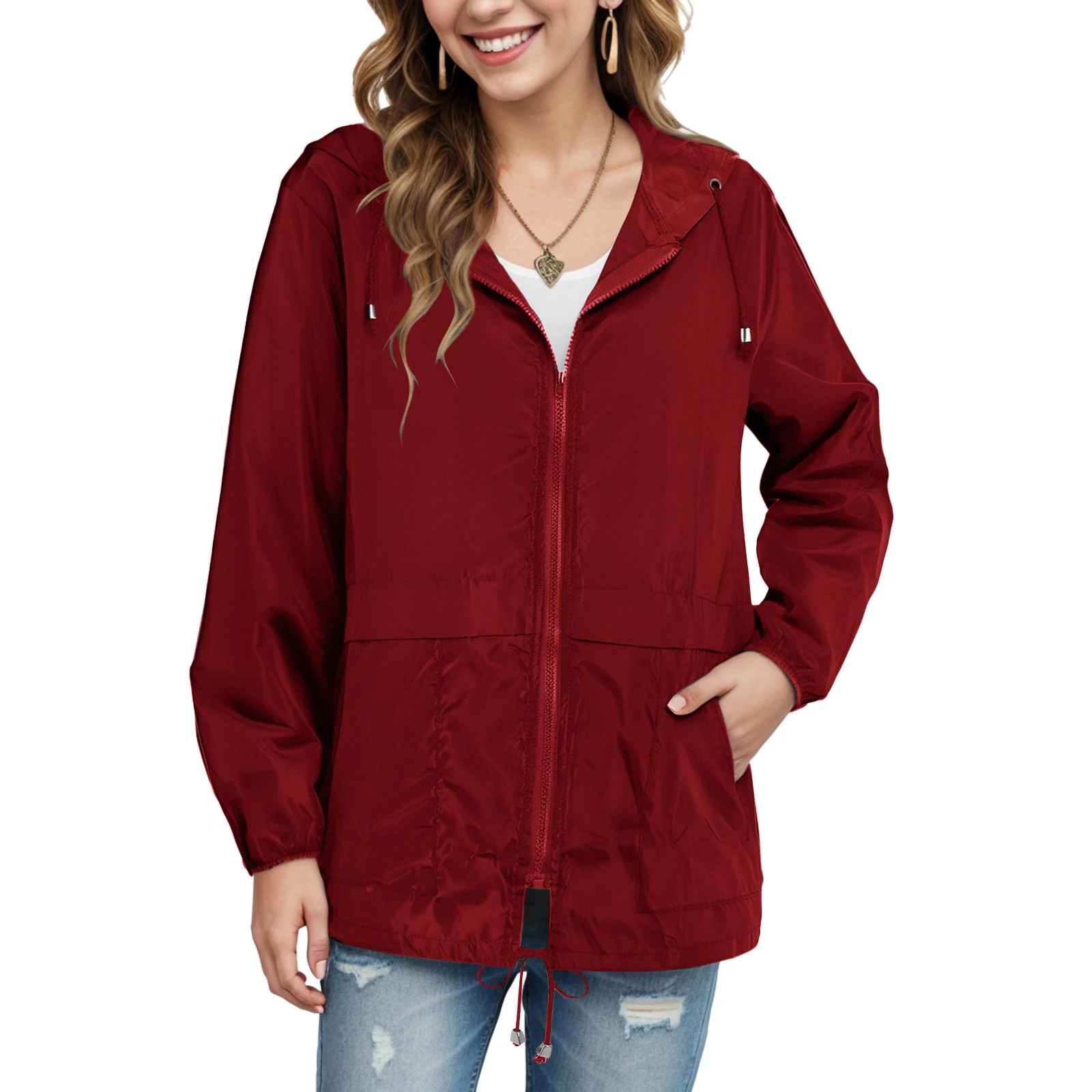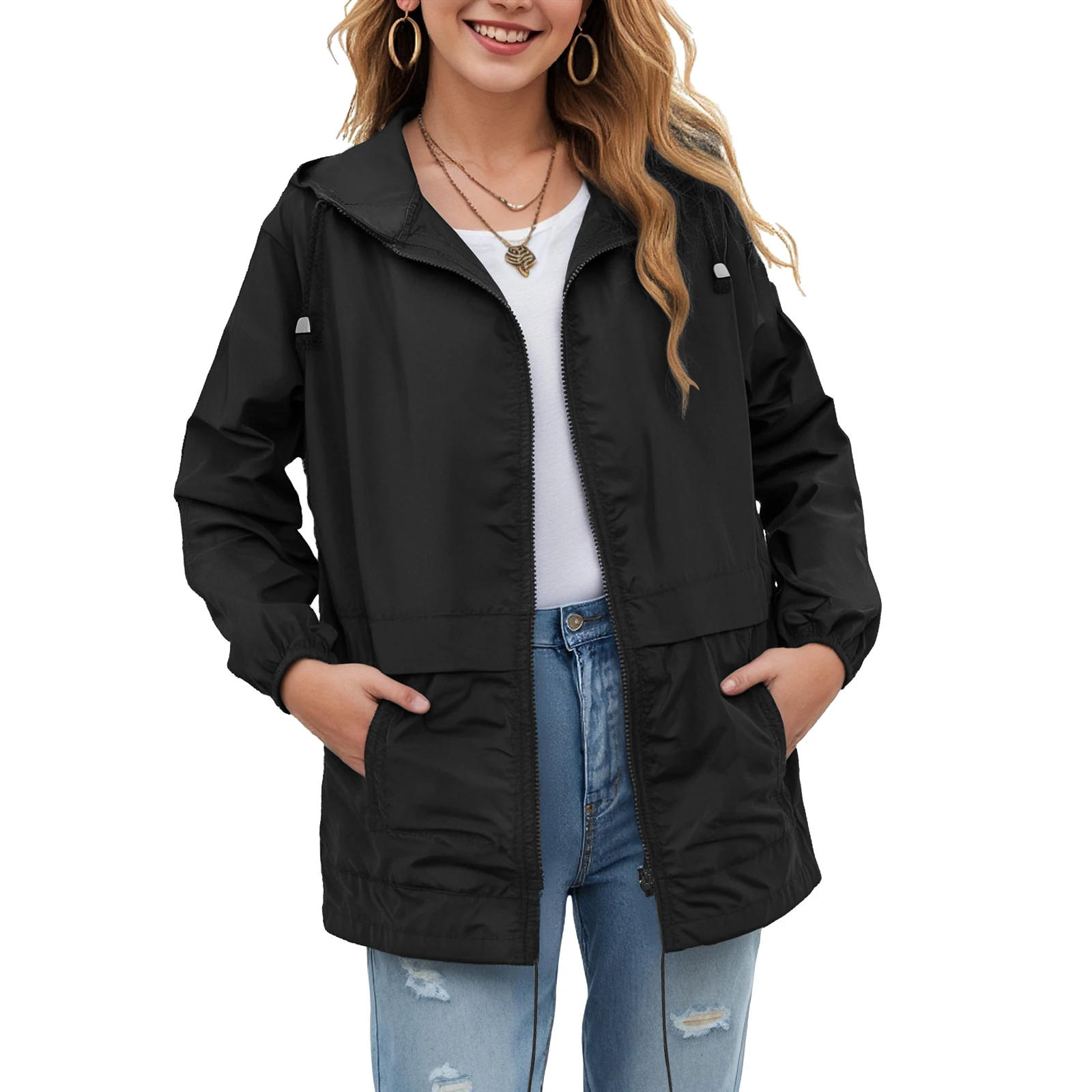 Lightweight Windbreaker Women Jackets Drawstring Full Zip Up Breathable Trench Raincoats Windproof Outdoor Hiking Coats Hooded