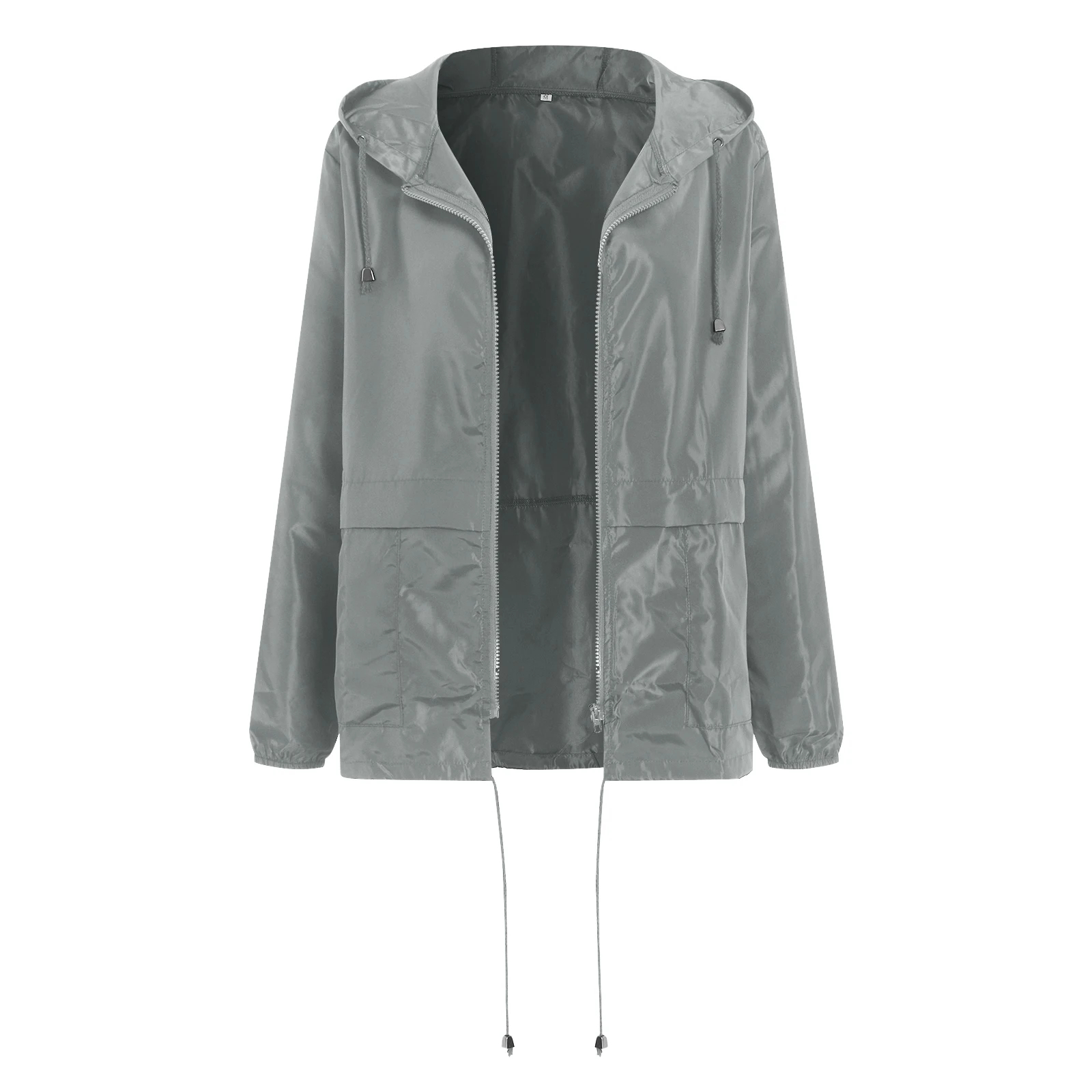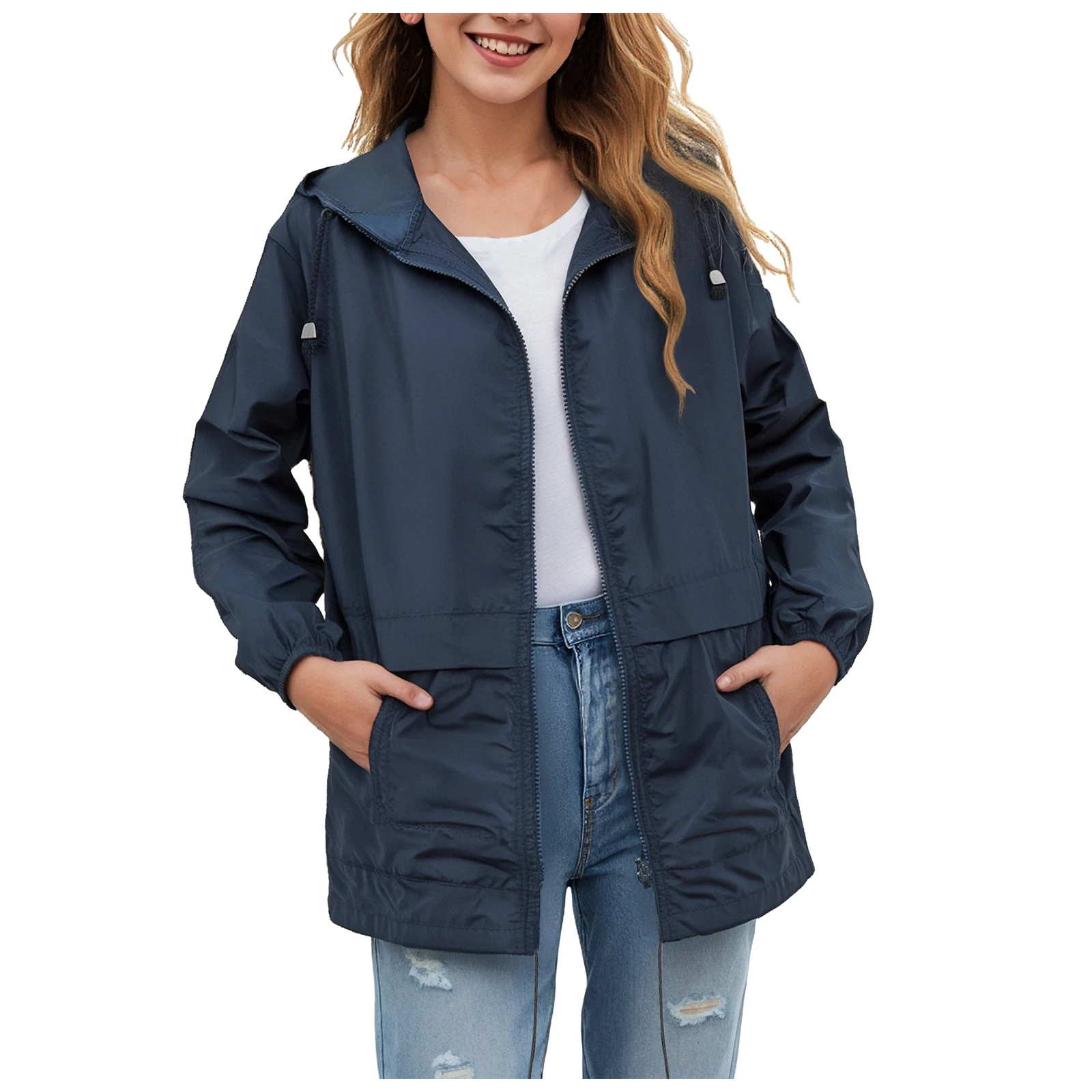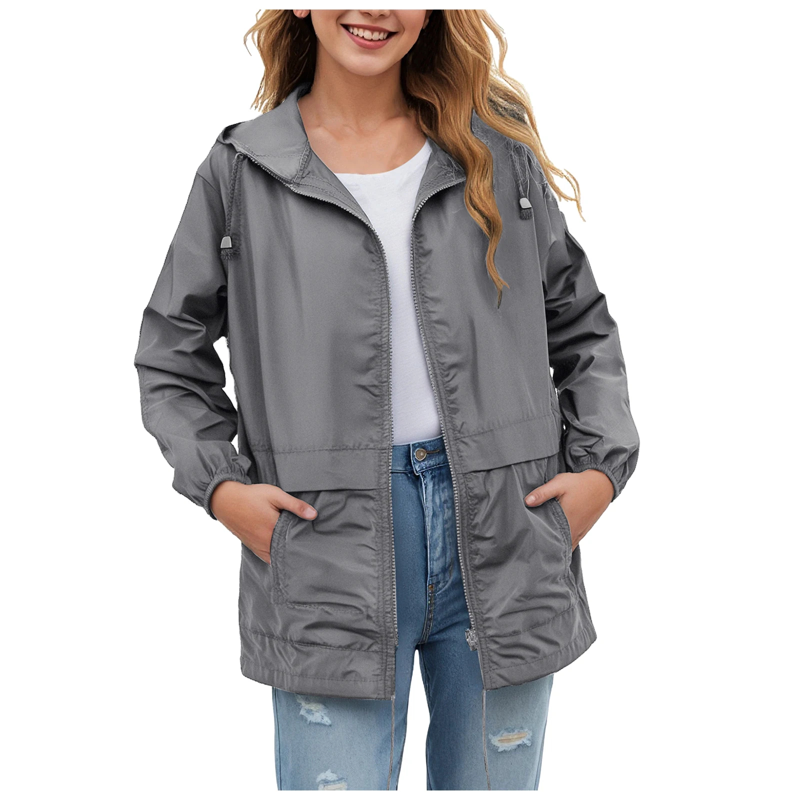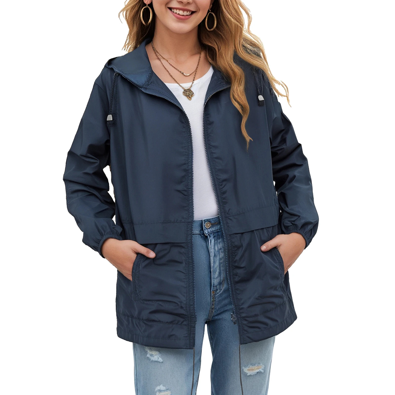 Lightweight Windbreaker Women Jackets Drawstring Full Zip Up Breathable Trench Raincoats Windproof Outdoor Hiking Coats Hooded