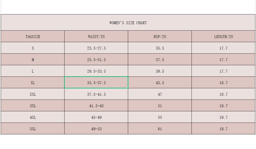 | Size | S US women's letter, M US women's letter, L US women's letter, XL US women's letter, 2X US women's letter, 3X US women's letter, 4X US women's letter, 5X US women's letter, Custom order US women's letter |
