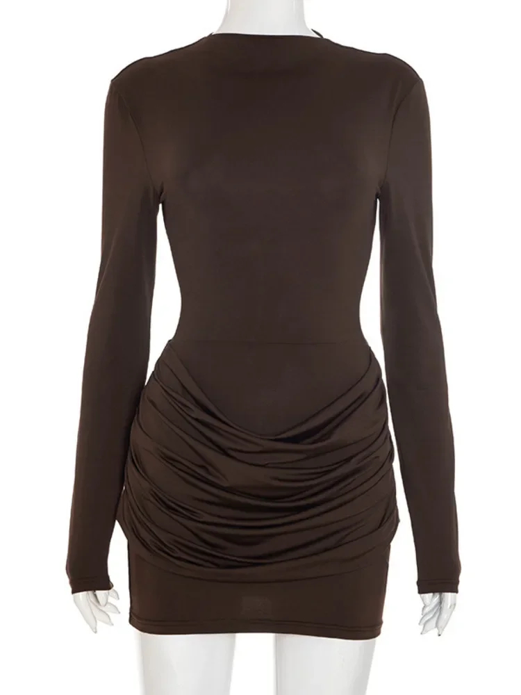 Long Sleeve Ruched Sexy Mini Dress Women Autumn Winter New Elegant High Waist Bodycon Club Party Dresses Female