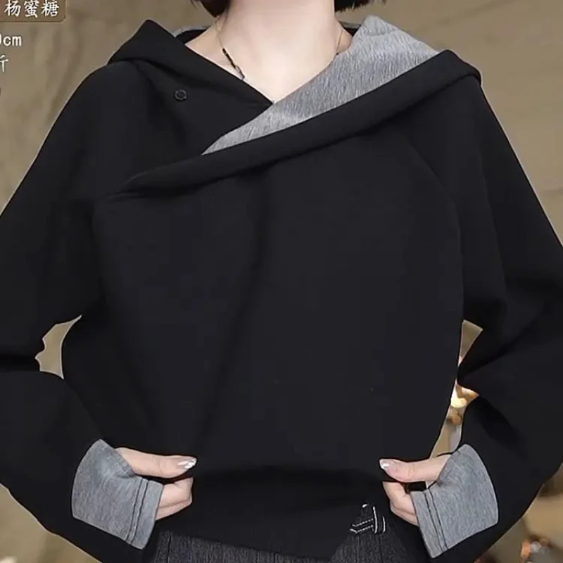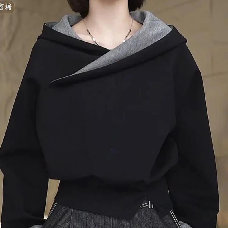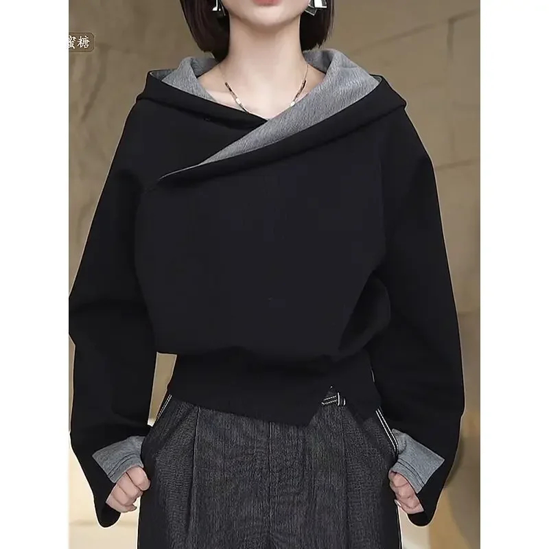 Description: This women’s long-sleeved top is a versatile and stylish addition to your wardrobe. Made of soft and breathable fabric, it ensures comfort across seasons. The asymmetric collar with contrasting details adds a unique touch, and the avant-garde cut brings a trendy artistic flair. It flatters your figure, making it suitable for daily wear, artistic gatherings, or fashion-centric occasions. Pair it with tailored pants, skirts, or jeans for a chic look that can be accessorized to match various events. Stay comfortable and fashionable with this avant-garde top.