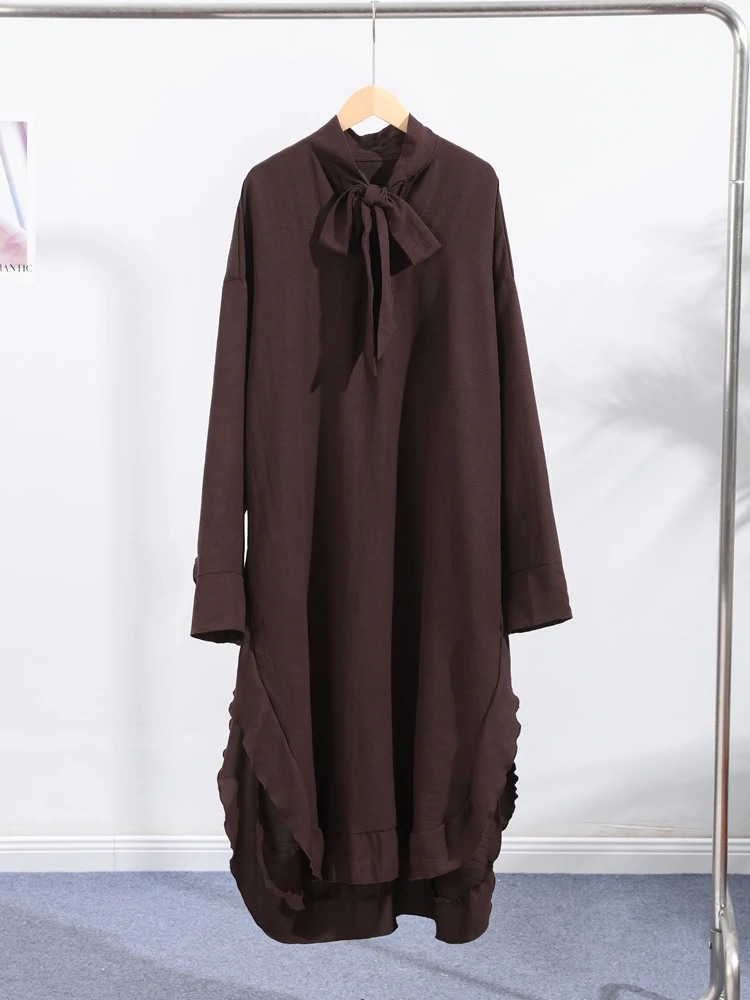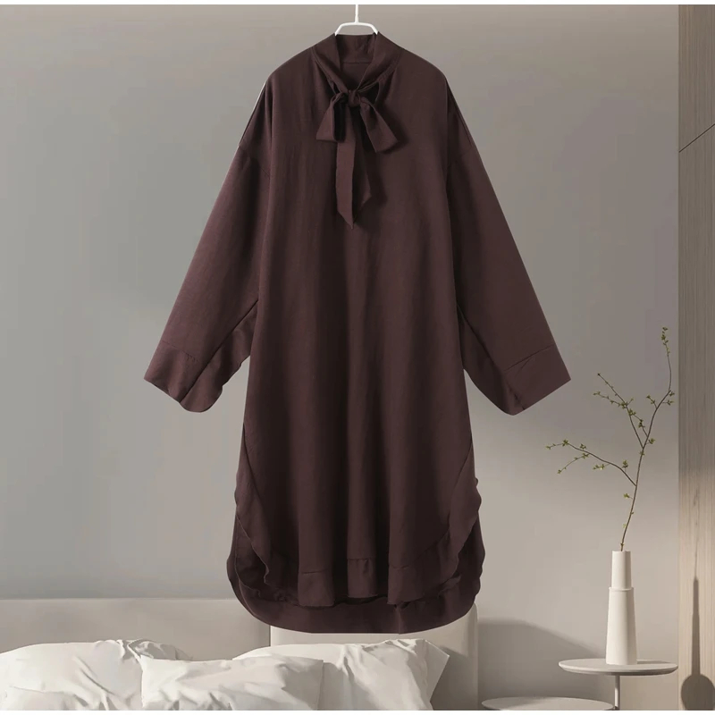Relaxed Oversized Fit: Designed in a loose, oversized silhouette, this long-sleeved maxi dress prioritizes comfort while offering a effortlessly stylish shape. The relaxed cut flatters various body types, balancing laid-back charm with polished appeal.