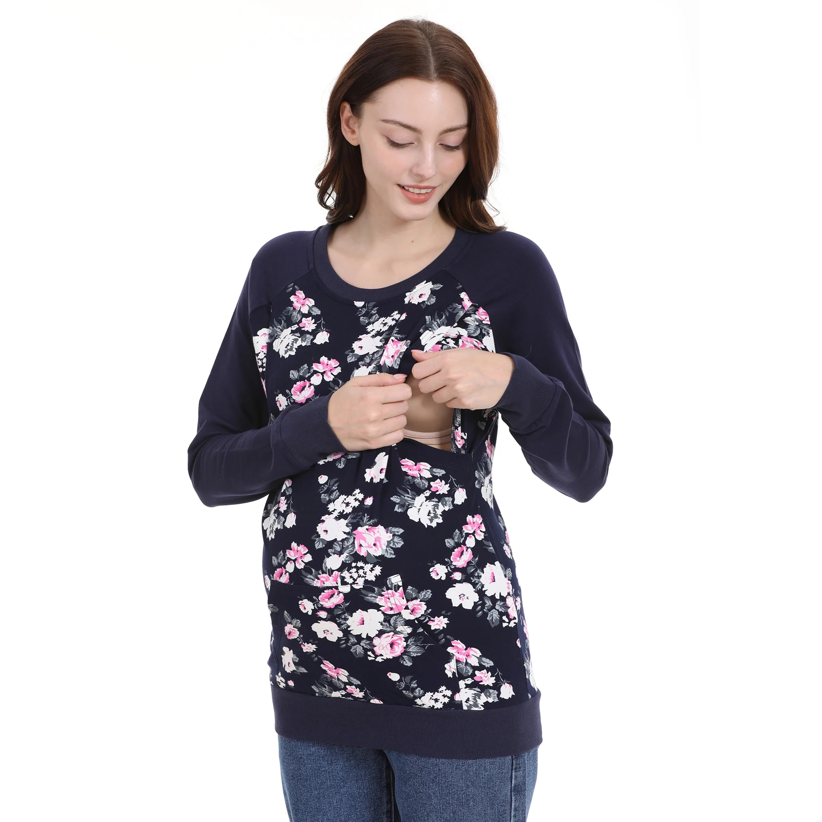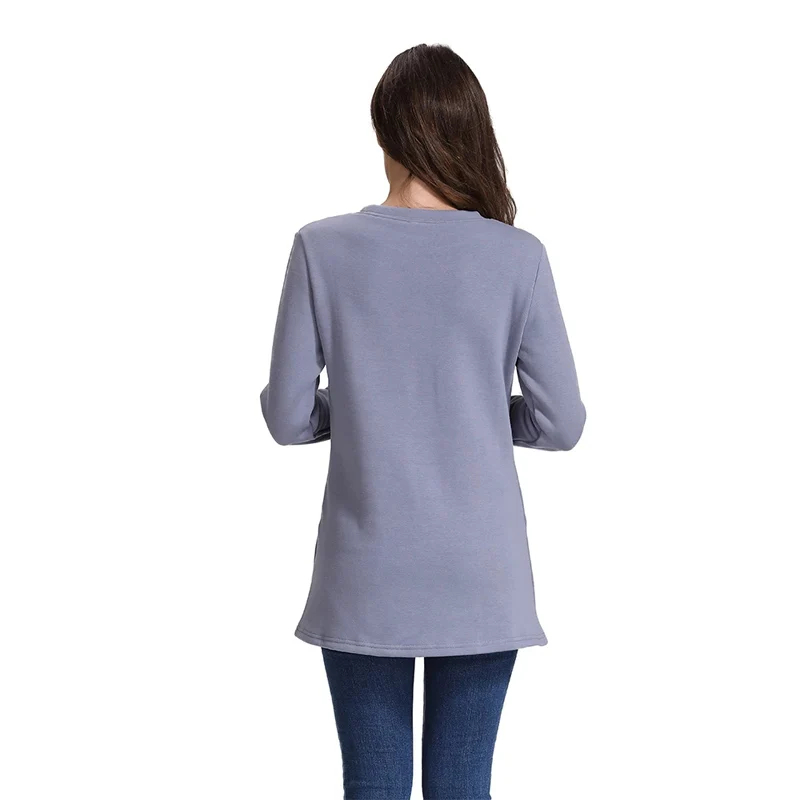 描述:这款女士长袖上衣是你衣橱中多功能实用的补充,尤其适合哺乳期妈妈。它采用柔软且贴肤的面料制成,确保春季、秋季乃至冬季叠穿都能保持舒适。这种适合哺乳的设计既方便又不牺牲时尚,常规版型更衬托你的身材。无论你是日常活动、休闲聚会还是短途外出,都可以搭配打底裤、牛仔裤或裙子,配饰适合任何场合。穿着这件美妙的上衣,保持舒适、时尚和自信。