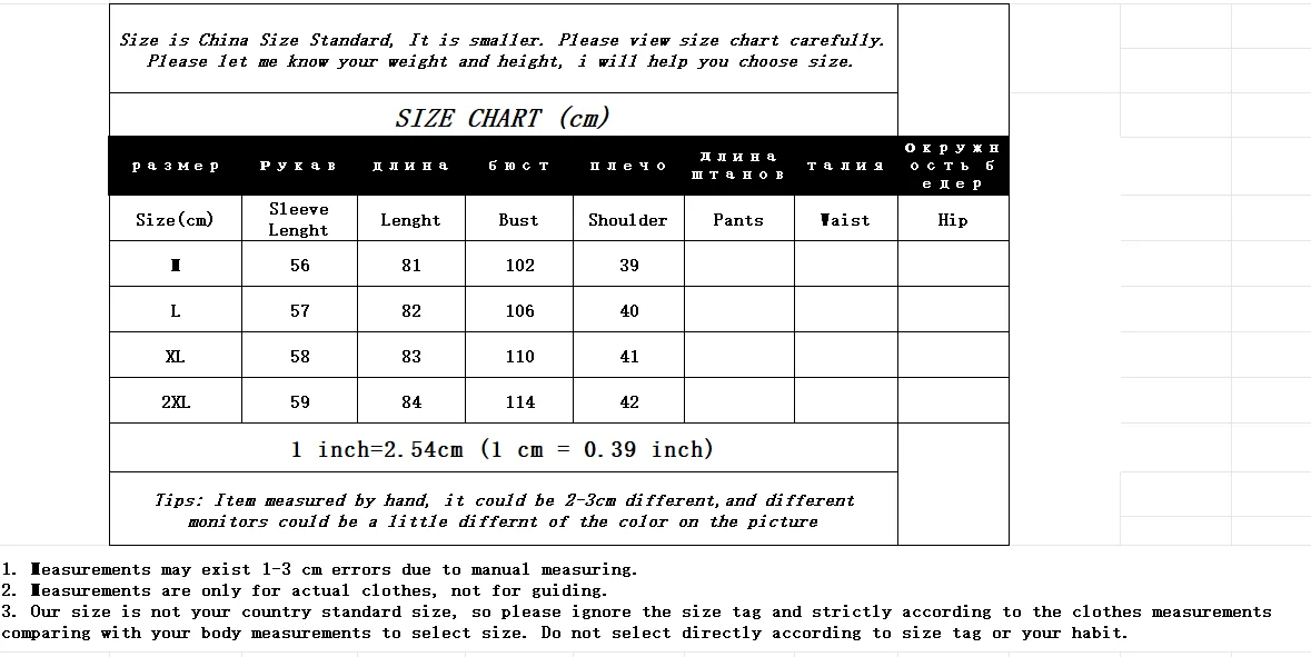 | Size | M, L, XL, XXL |