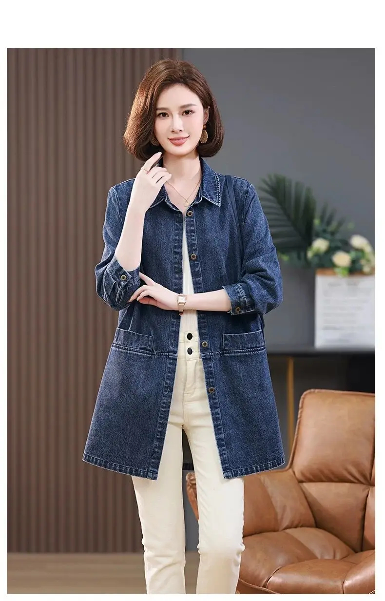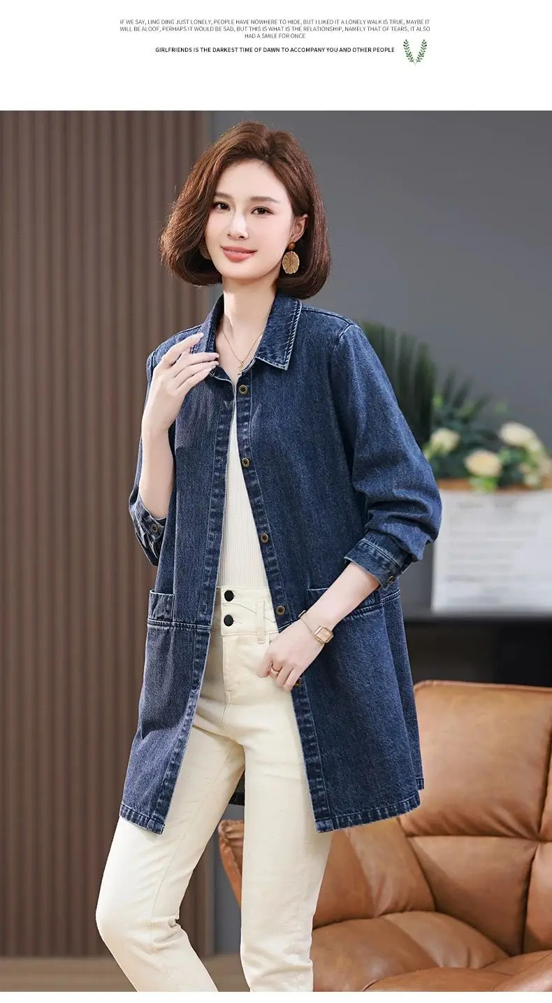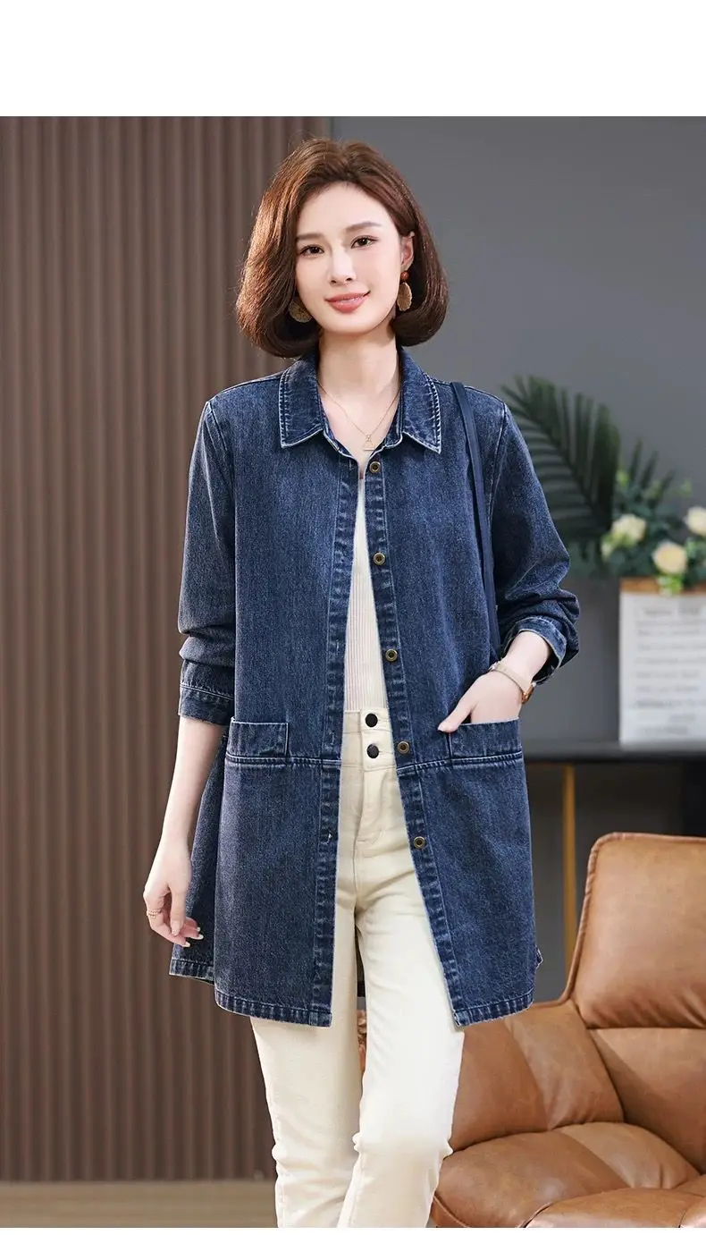 Medium long Denim Jacket For women Spring Autumn 2025 New Fashion Korean version Soft Loose Casual Versatile Denim Shirt Female