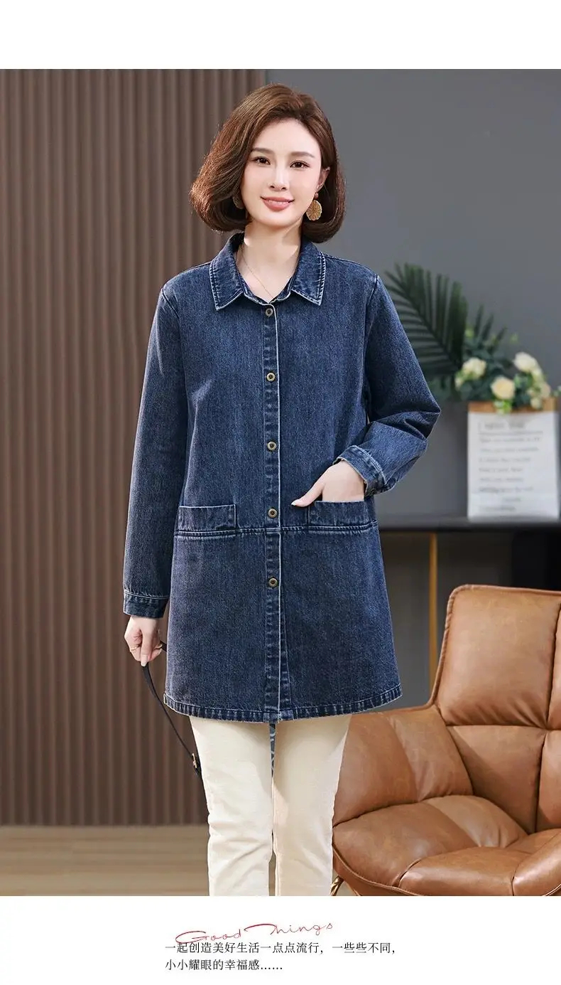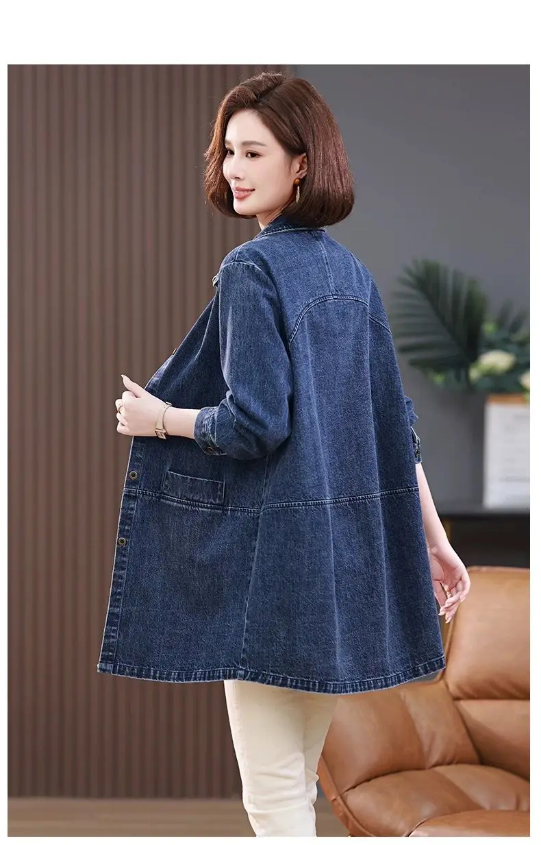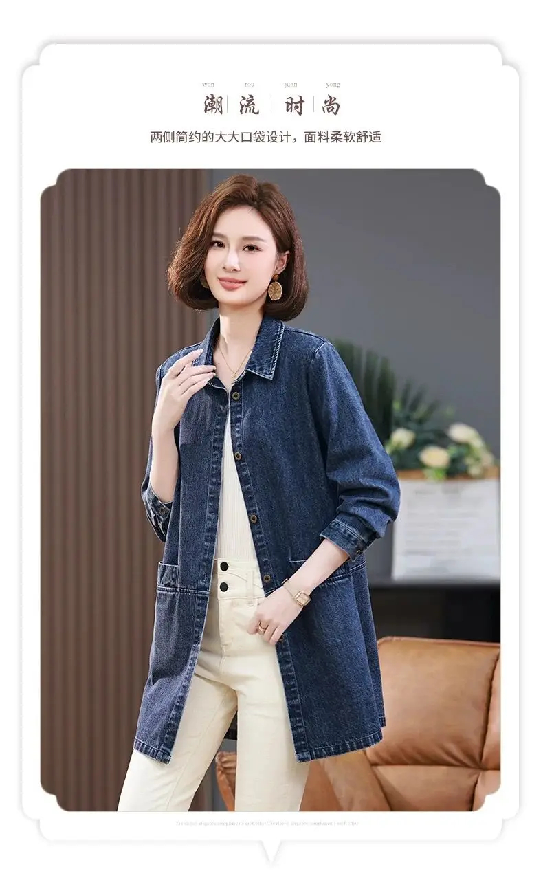Medium long Denim Jacket For women Spring Autumn 2025 New Fashion Korean version Soft Loose Casual Versatile Denim Shirt Female