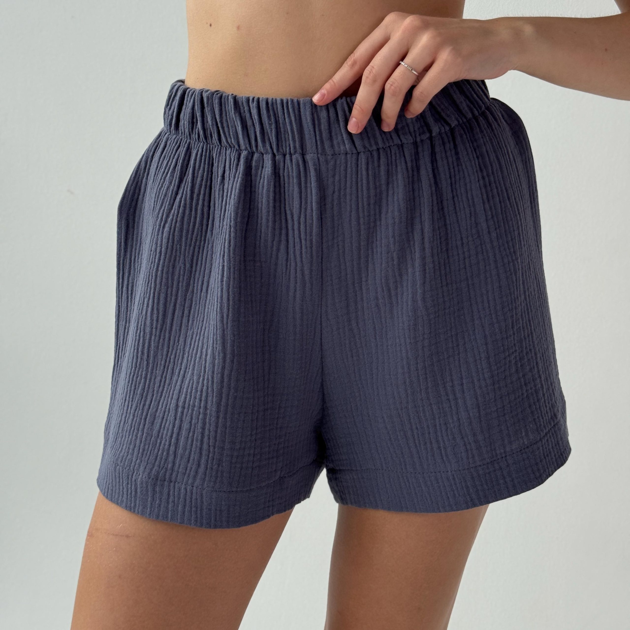 Crafted from premium crinkled fabric, these shorts deliver exceptional softness and lightweight breathability, keeping you cool and cozy in warm seasons summer or late spring while maintaining a relaxed, elegant vibe.