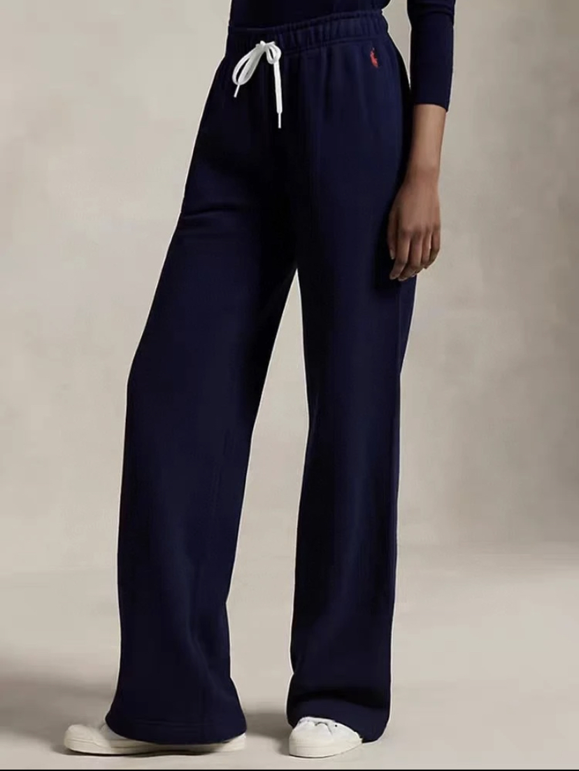 Navy Blue Wide-Leg Drawstring Sweatpants
