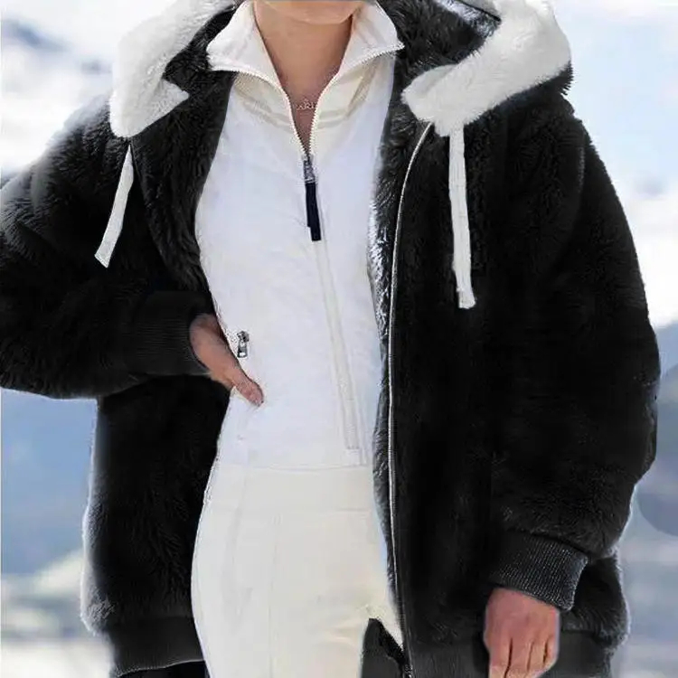 New Winter Loose Plush Zipper Hooded Women Autumn Casual Jacket Fashion Warm Coat