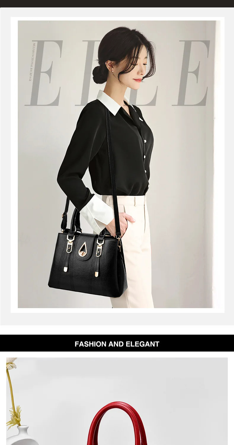 Crafted from premium faux leather, this handbag offers exceptional smoothness and a sophisticated look. It ensures elegance and durability for various occasions, from daily commutes to formal events, without compromising style.