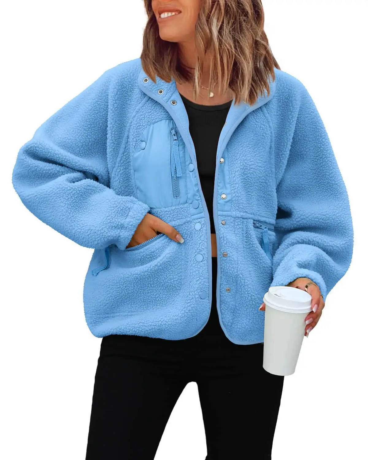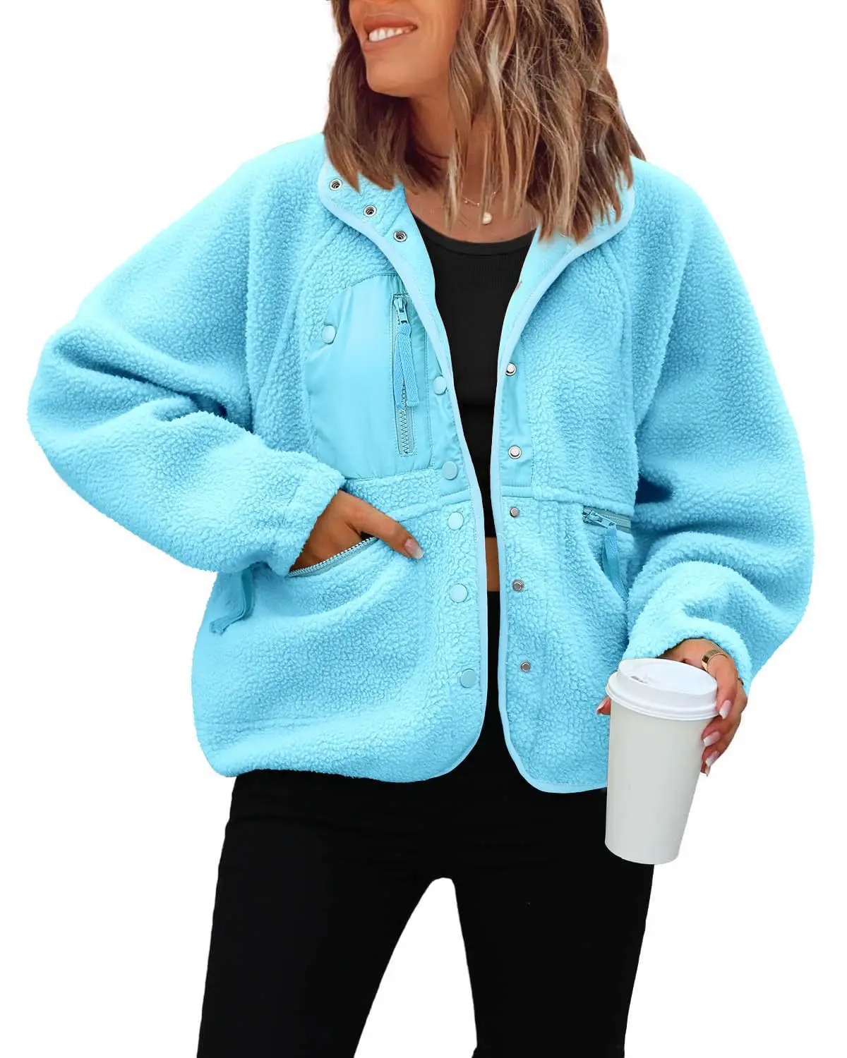 Plush & Breathable: Crafted from premium polyester fiber, this jacket offers exceptional softness and breathability—its fluffy fleece texture ensures warmth and comfort in cool weather like spring or autumn while maintaining a trendy, cozy silhouette.