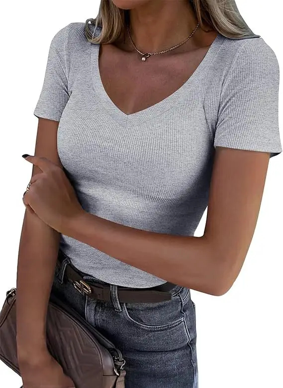Flattering V-Neck Design: Featuring a stylish V-neck, this top adds a feminine and elegant touch to your look, accentuating the collarbone and neckline for a charming appearance.