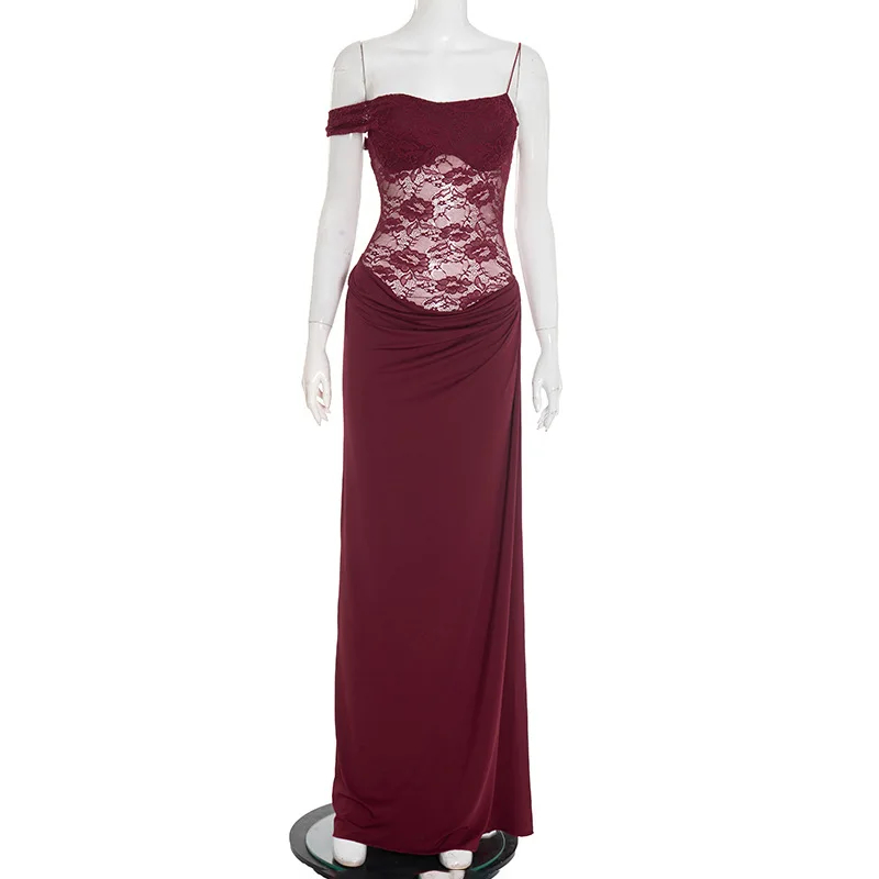 One Shoulder Lace See Through Sexy Maxi Dress Women Gown Fashion Off-shoulder Sleeveless Backless Club Long Dresses