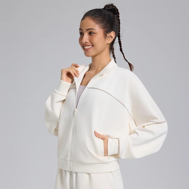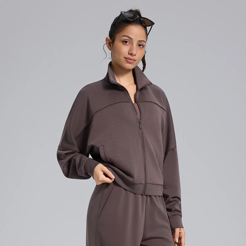 Crafted from premium lightweight material, this zip-up top offers exceptional softness and breathability—ideal for year-round wear, whether layered or styled alone. The smooth texture feels gentle against the skin while maintaining a polished, structured look.