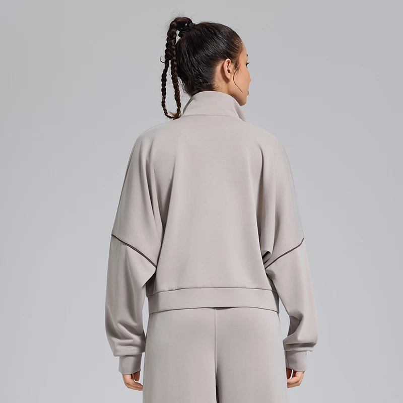 This women’s zip-up cropped top is a versatile staple for your wardrobe. Made from smooth, breathable material, it keeps you comfortable in any season without feeling restrictive. The oversized fit and contrast stitch detail add a trendy, relaxed touch, while the half-zip design ensures easy styling. Suitable for daily wear, loungewear sets, or casual outings, this top blends comfort with understated elegance—pair it with matching bottoms or your favorite separates to create chic, effortless outfits.