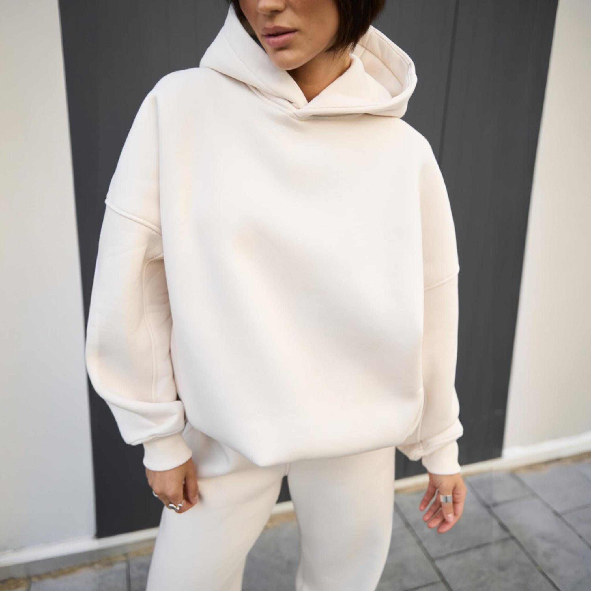 Crafted from premium soft fleece material, this oversized hoodie delivers exceptional softness and gentle breathability—keeping you cozy in cool to mild seasons autumn, winter, or early spring while maintaining a relaxed, luxurious style. The fabric’s smooth texture feels gentle against the skin, balancing warmth with lightness for all-day comfort.