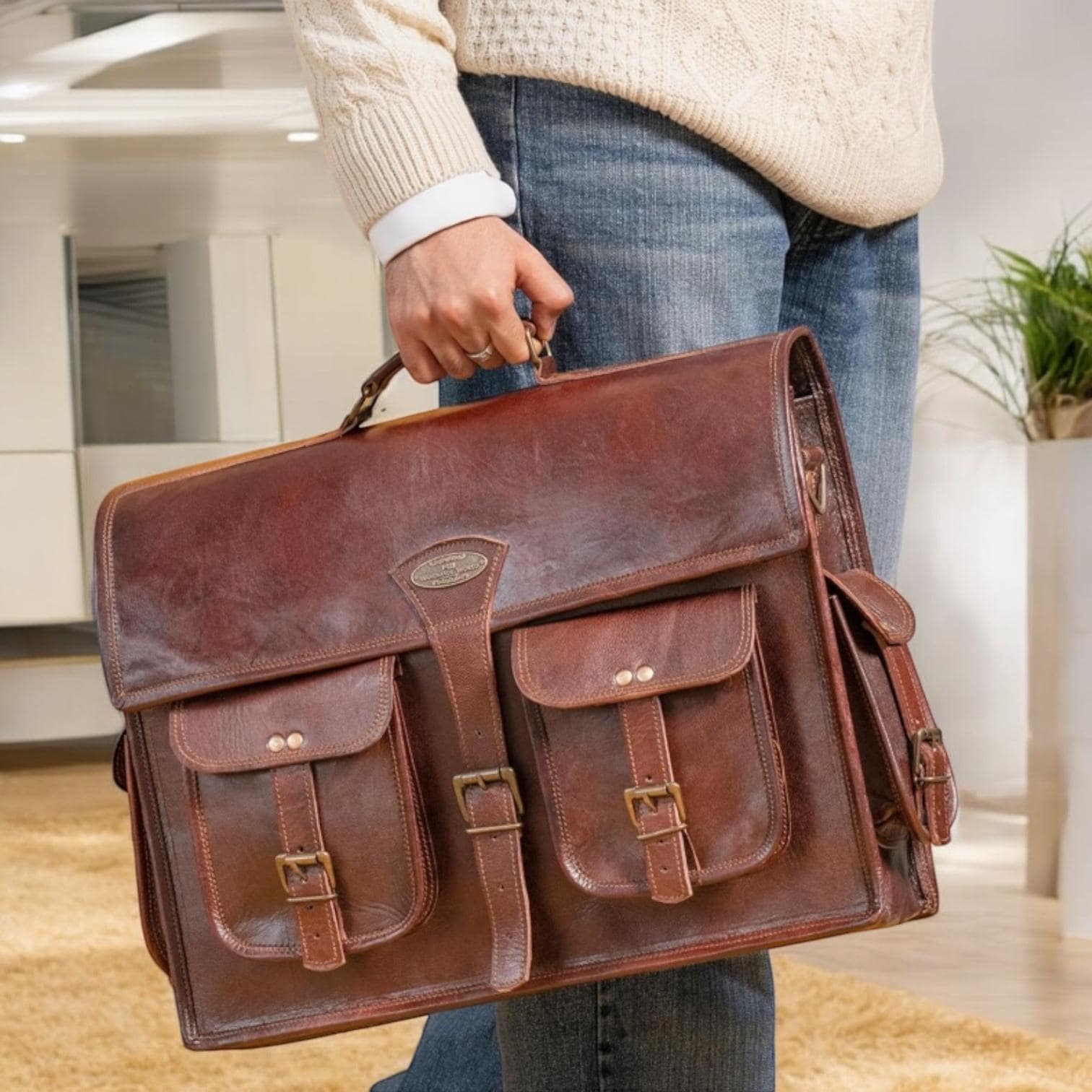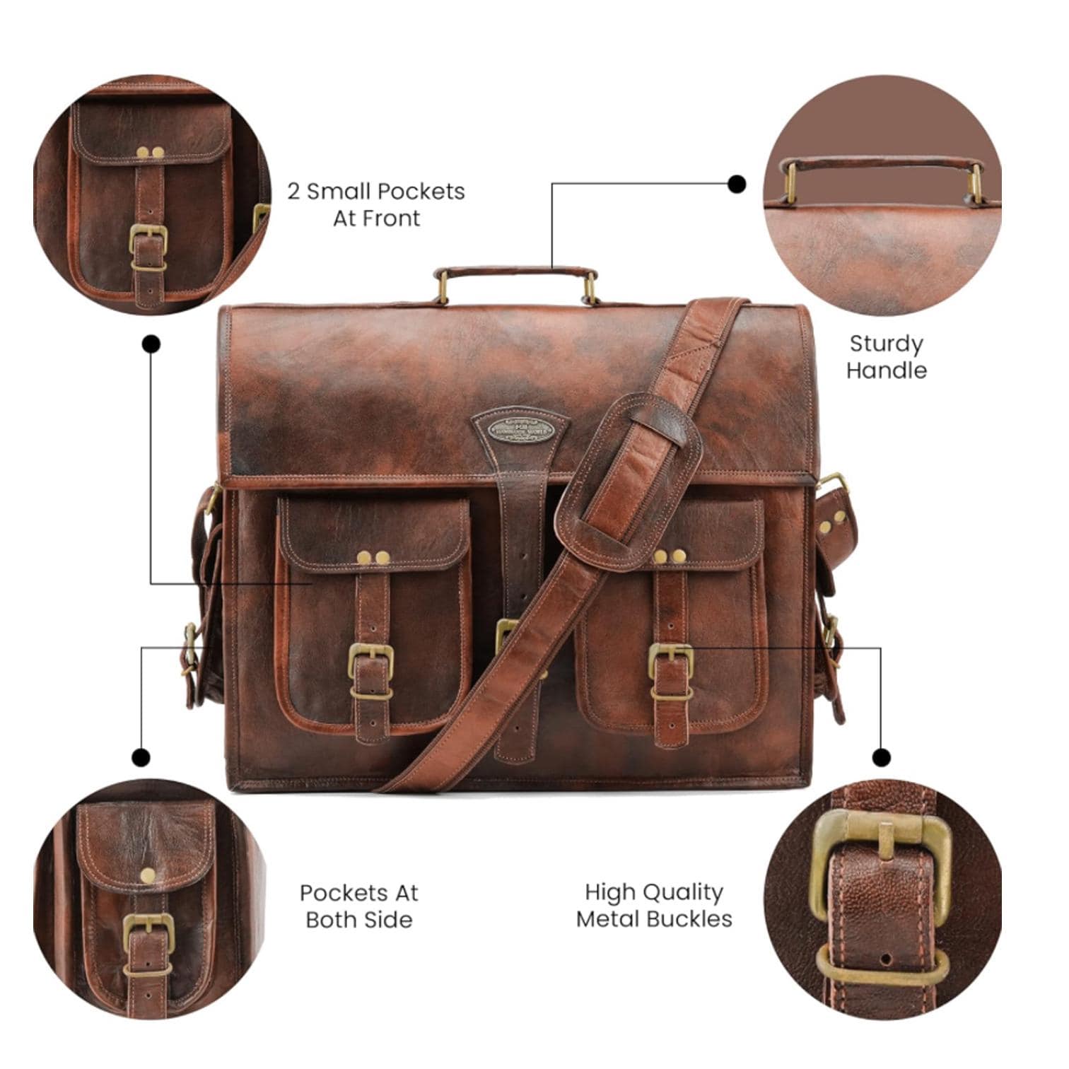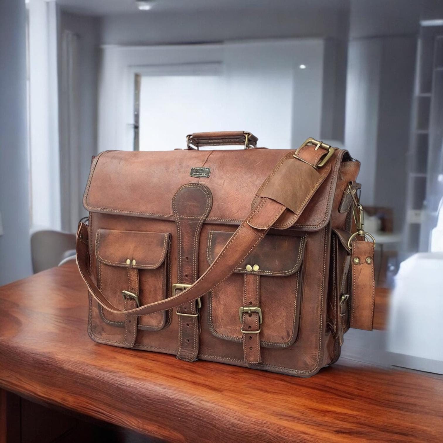 Personalized Leather Messenger Bag: Vintage Brown Crossbody Laptop Briefcase