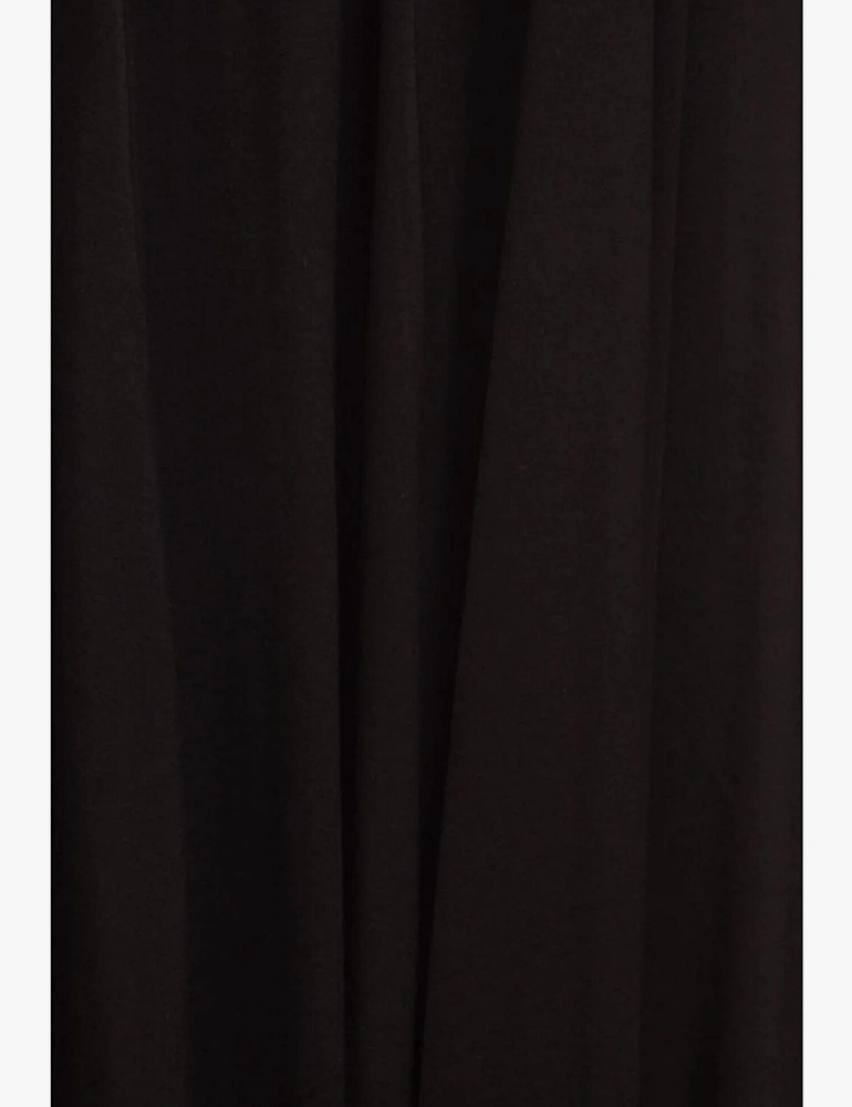 This black midi dress is a timeless staple that effortlessly merges simplicity and elegance. It features a round neckline, three – quarter sleeves, and a flowing A – line silhouette that flatters various body shapes. The soft, draping fabric ensures comfort, while the classic black color exudes sophistication, making it a versatile piece suitable for both daytime and evening looks.