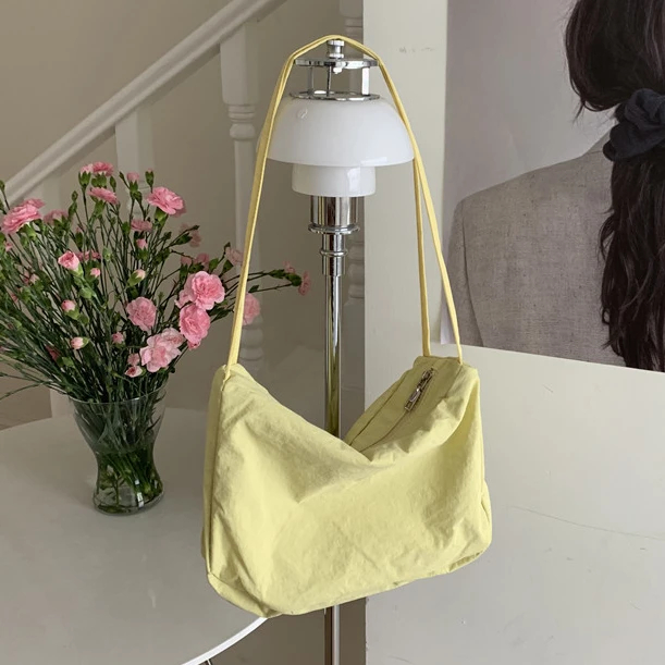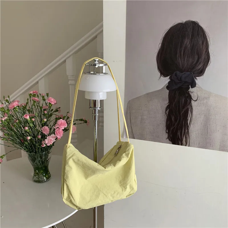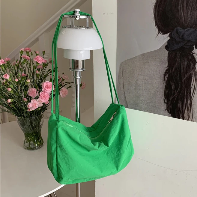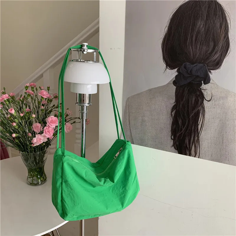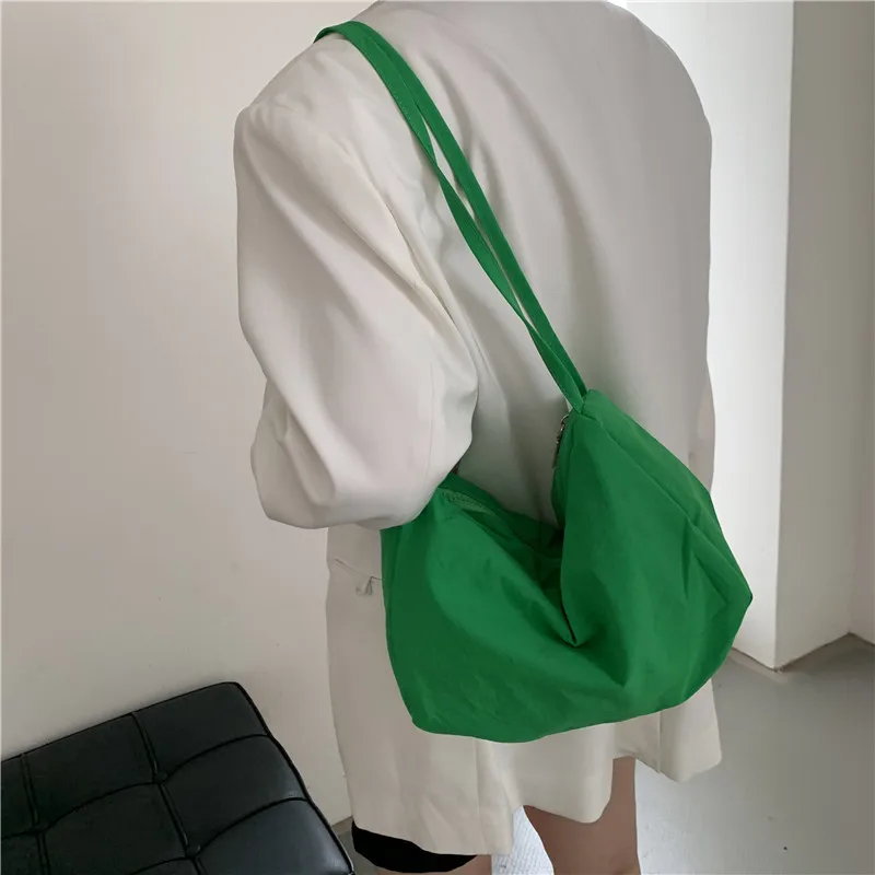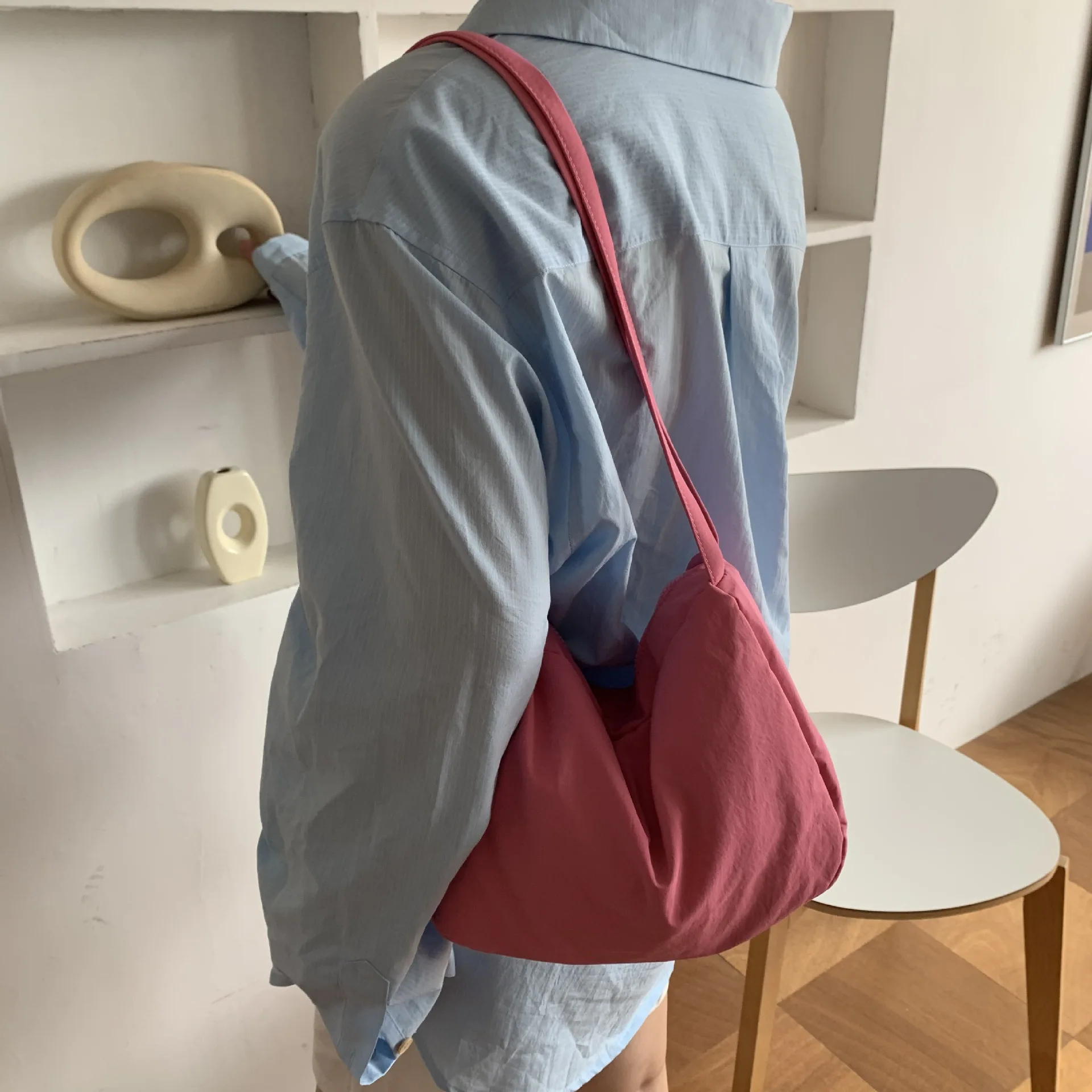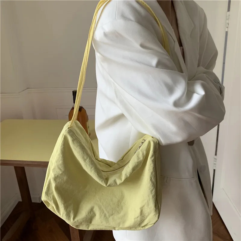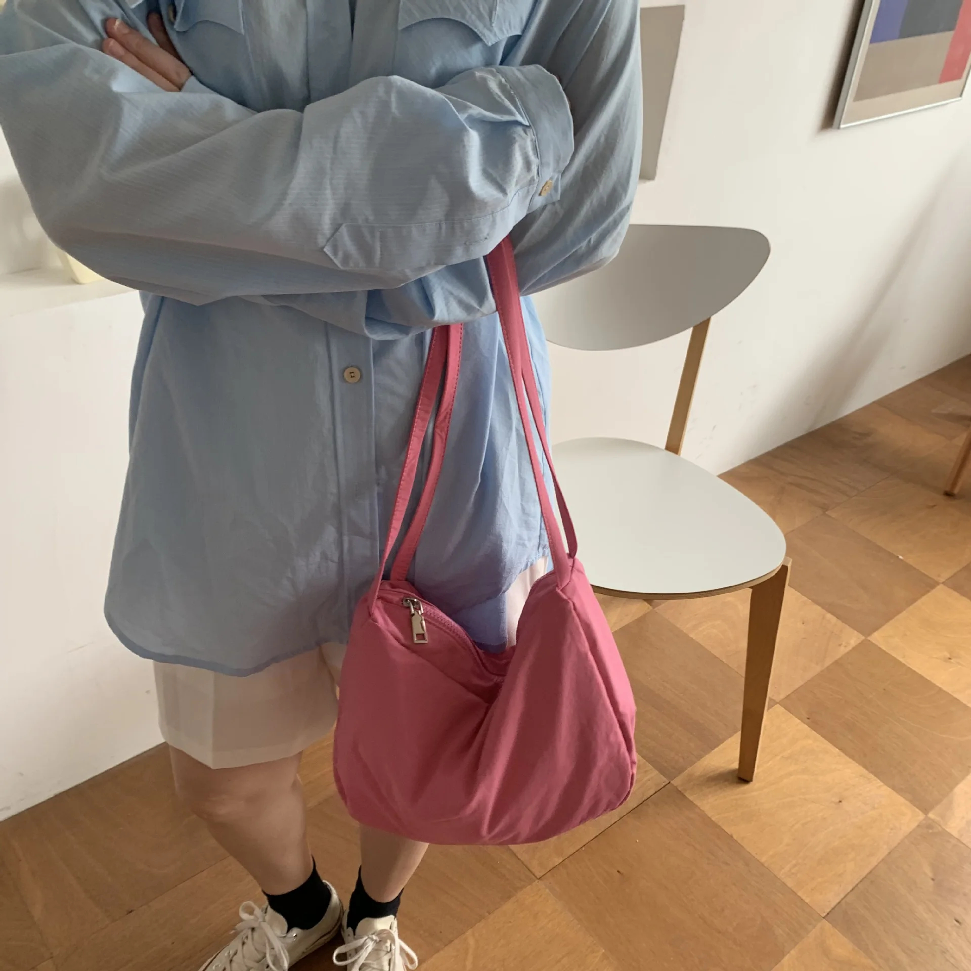 Portable Nylon Women's Simple Shoulder Bags Solid Color Design Ladies Hobos Purse Handbags Fashion Zipper Female Underarm Bag