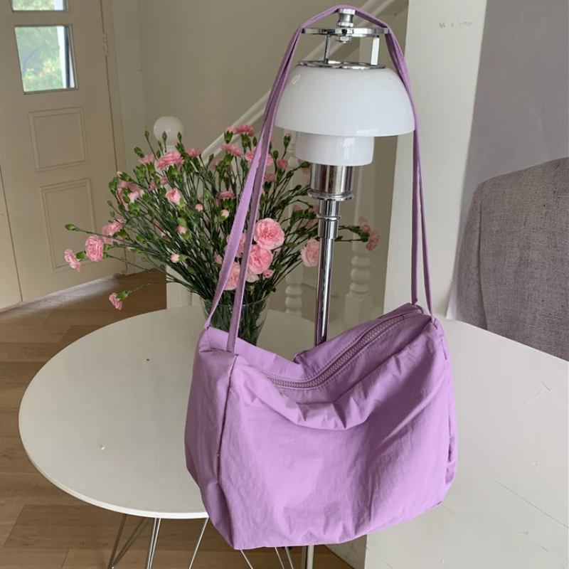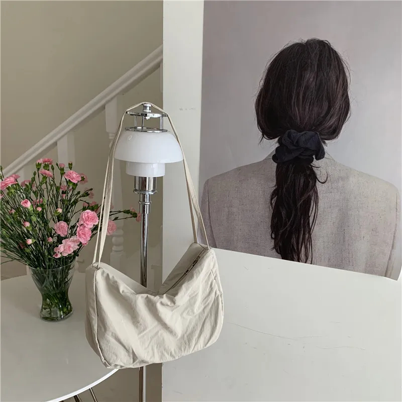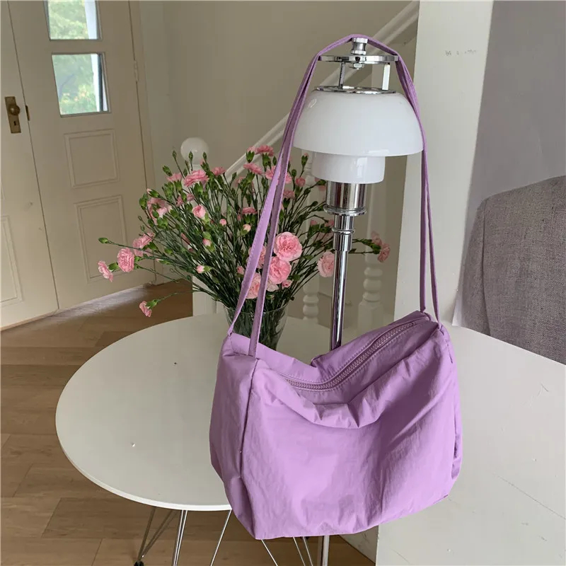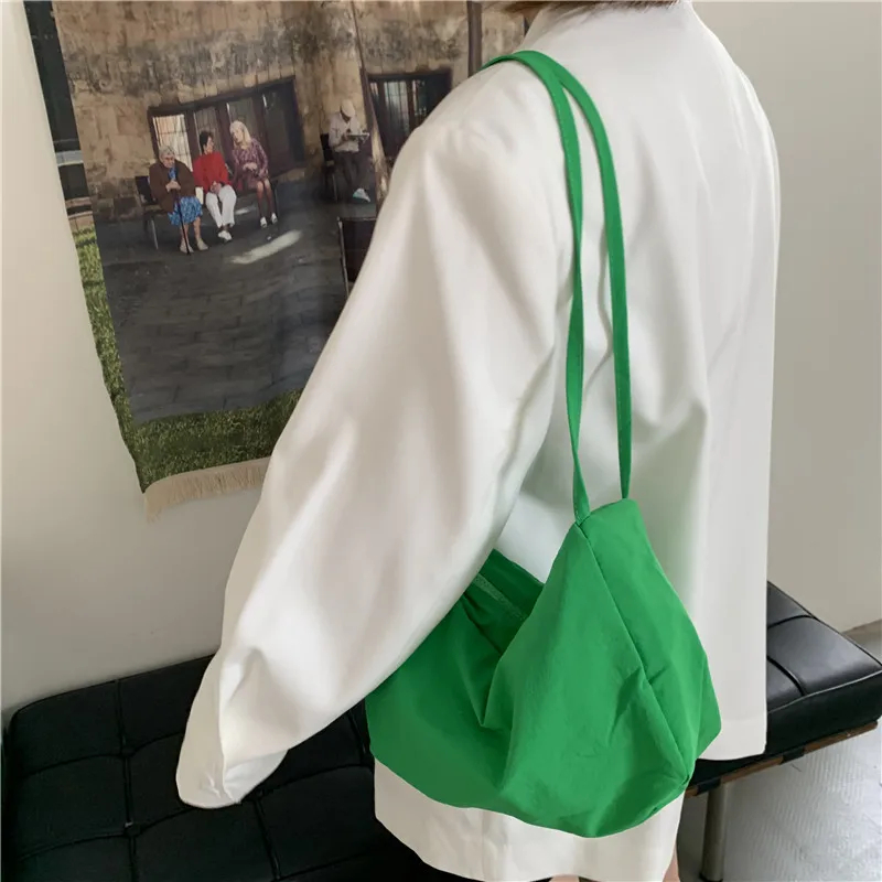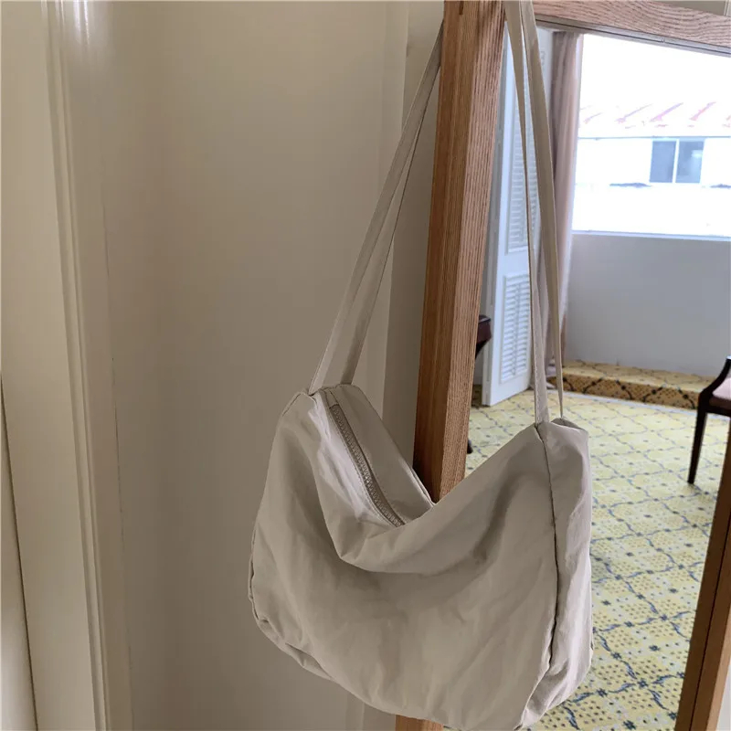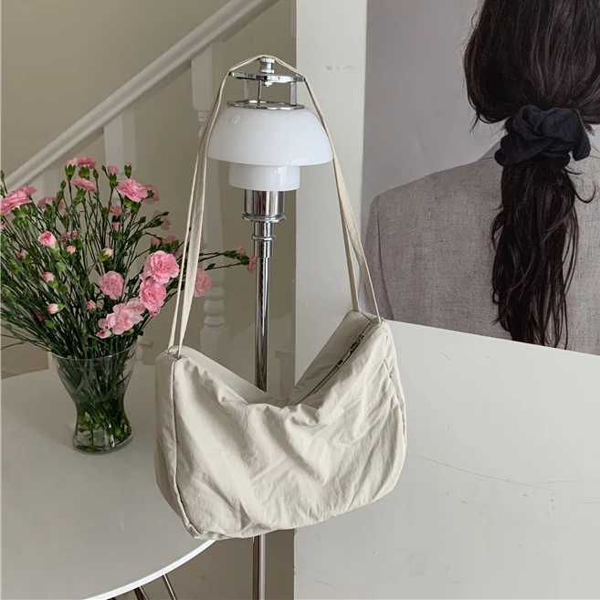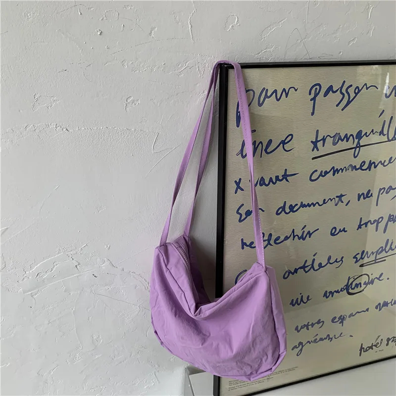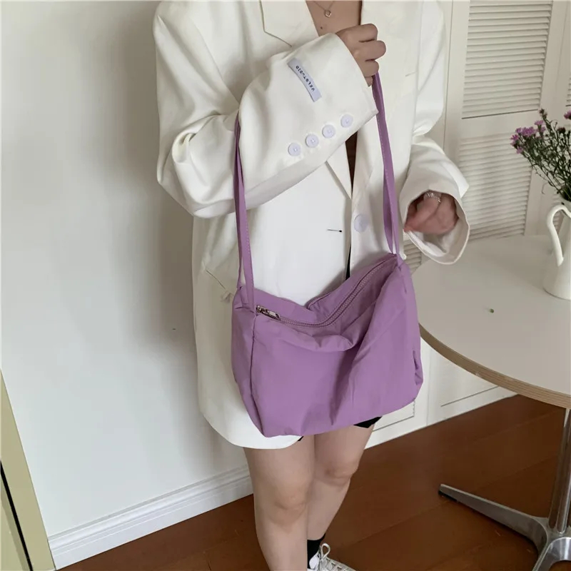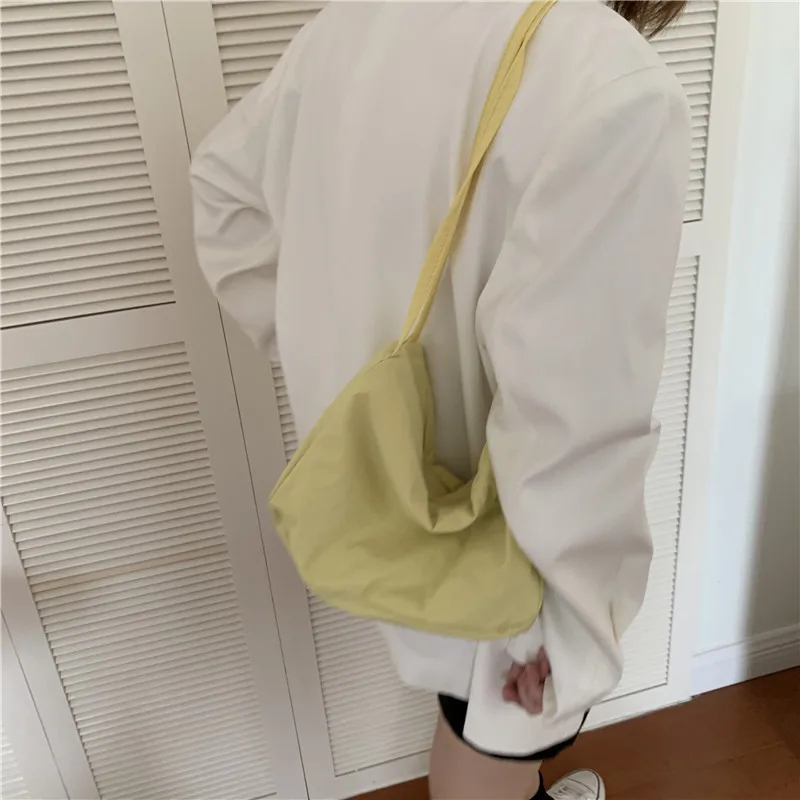 Portable Nylon Women's Simple Shoulder Bags Solid Color Design Ladies Hobos Purse Handbags Fashion Zipper Female Underarm Bag